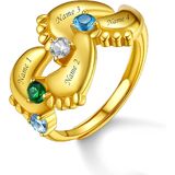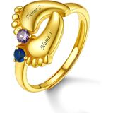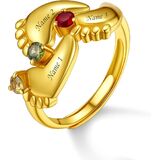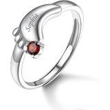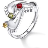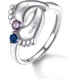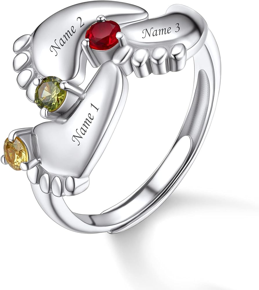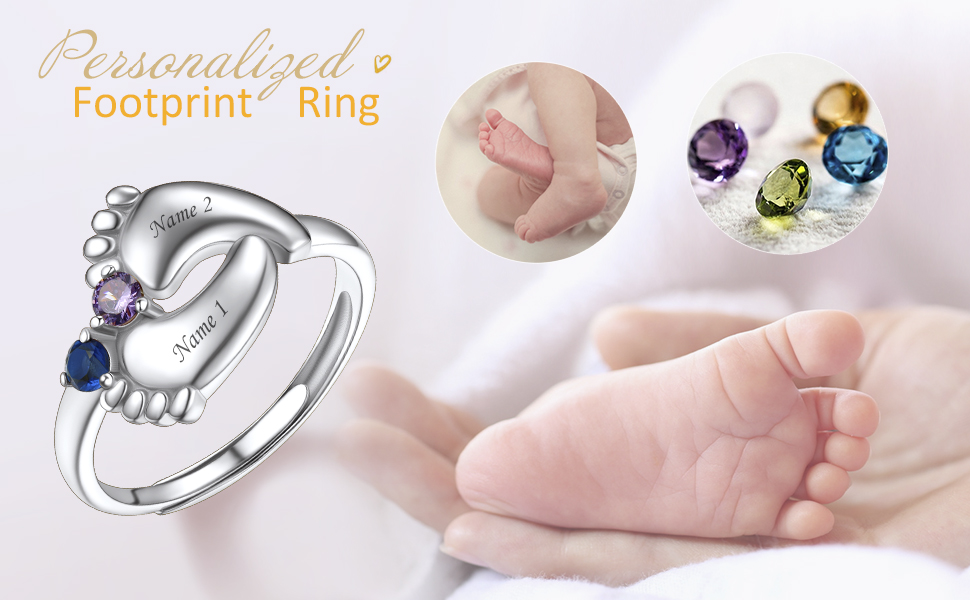 • [ Engraved Baby Feet Ring with Birthstone Sterling Silver] Custom mother's ring with name and birthstone.It could be a mother jewelry,perfect personalized birthstone gifts for mom or treat yourself,even as a memorial ring for show your love to the special one in your life!
