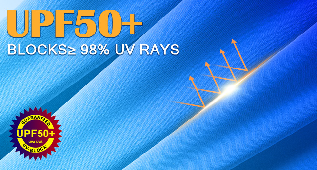 حماية من أشعة الشمس بعامل حماية من أشعة الشمس 50+: تحجب 98% من الأشعة فوق البنفسجية مع نسيج بعامل حماية من أشعة الشمس 50+ لتقليل تعرض الجلد ومخاطر حروق الشمس؛ يعمل بمثابة واقٍ من الشمس موثوق به لأنشطة الشاطئ طوال اليوم أو السباحة أو صيد الأسماك، مما يوفر تغطية مستهدفة للأنشطة المائية المكثفة