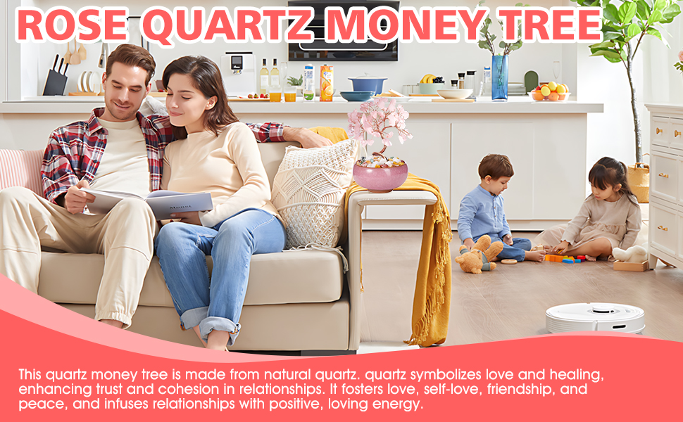 الكريستال الطبيعي: شجرة الأحجار الكريمة مصنوعة من الكريستال الطبيعي وتأتي بقاعدة من السيراميك. يمثل الكريستال الحب والشفاء، ويعزز الثقة والتماسك في العلاقات، وينمي مشاعر الحب وحب الذات والصداقة والسلام، ويضيف طاقة الحب الإيجابية إلى العلاقات بين الأشخاص.
