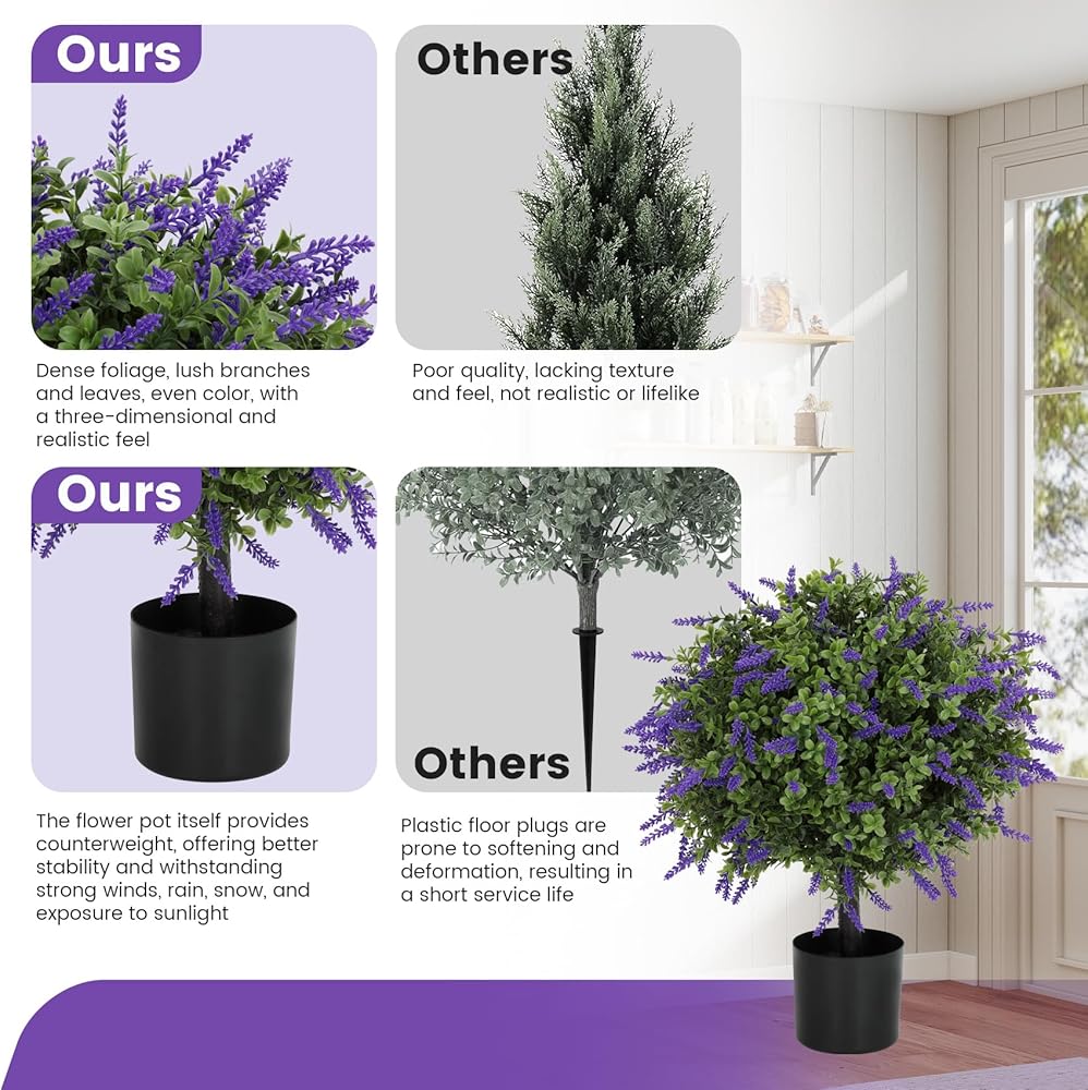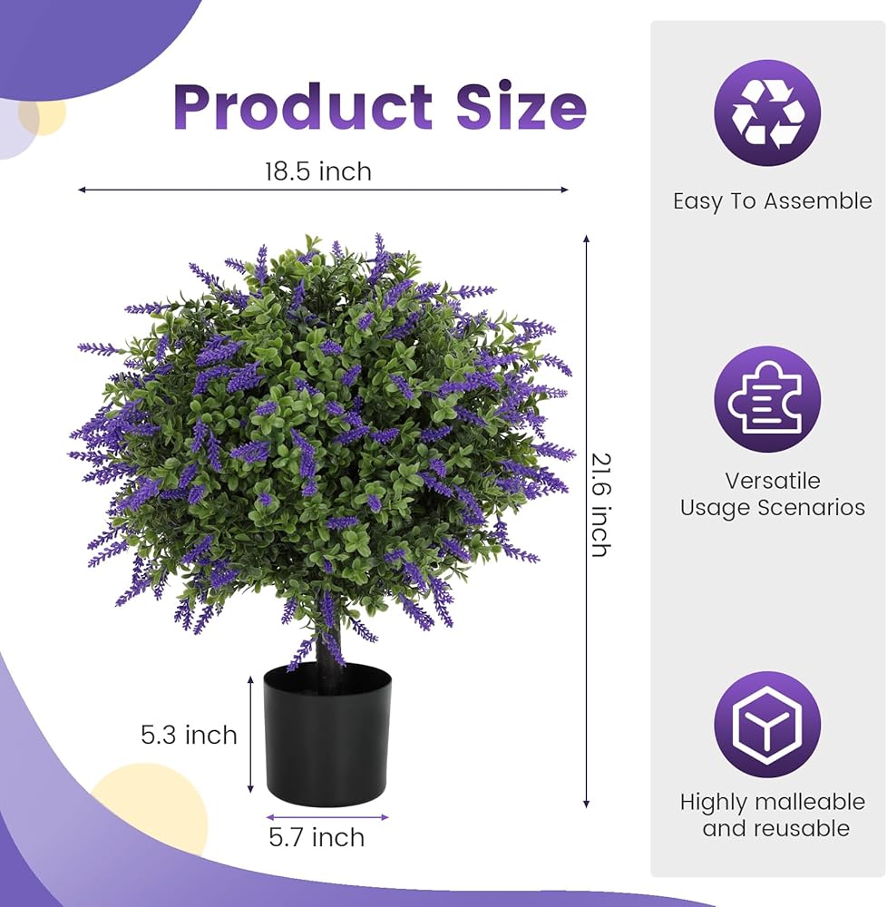 أشجار كروية لافندر صناعية مقاس 21.6 بوصة مع وعاء أسمنتي، مجموعة مقاومة للأشعة فوق البنفسجية مكونة من قطعتين من خشب البقس اللافندر الواقعي، ديكور لافندر توبياري أرجواني للحديقة والفناء والفناء، هدايا زينة عيد الميلاد