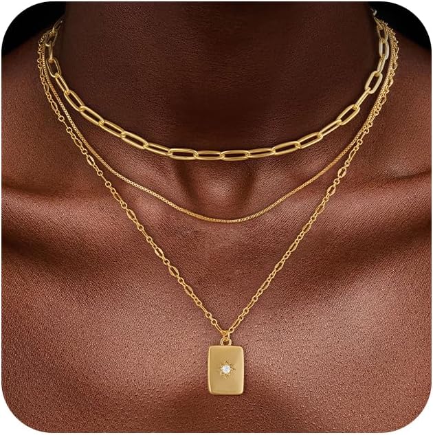 قلائد ذات طبقات للنساء: تتميز مجموعة المجوهرات الذهبية هذه بثلاث قلادات أنيقة مطلية بالذهب: سلسلة مطرزة، وسلسلة ألماس، وقلادة متدلية على شكل عملة معدنية مطروقة. يمكن ارتداؤها بشكل فردي أو مكدسة للحصول على مظهر أنيق متعدد الطبقات. التصميم البسيط ومتعدد الاستخدامات يسهل تنسيقه مع المجوهرات النسائية الأخرى، مما يجعله مثاليًا للارتداء اليومي ومجموعة متنوعة من الملابس