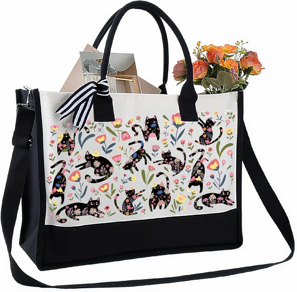 هدية مثالية: هدية مدروسة وعملية لأعياد الميلاد أو الكريسماس أو الهالوين أو عيد الشكر أو العطلات أو المناسبات الخاصة. تمثل حقيبة اليد الجميلة ذات الأزهار مفاجأة رائعة للأصدقاء والعائلة وزملاء العمل الذين يعشقون القطط والإكسسوارات العملية