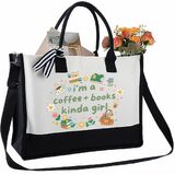 حقيبة حمل من قماش الكتب: مصممة بمزيج فني من الكتب المكدسة والزهور المتفتحة، تعكس حقيبة اليد الجمالية هذه حب القراءة والطبيعة، مما يجعلها إكسسوارًا أنيقًا للاستخدام اليومي