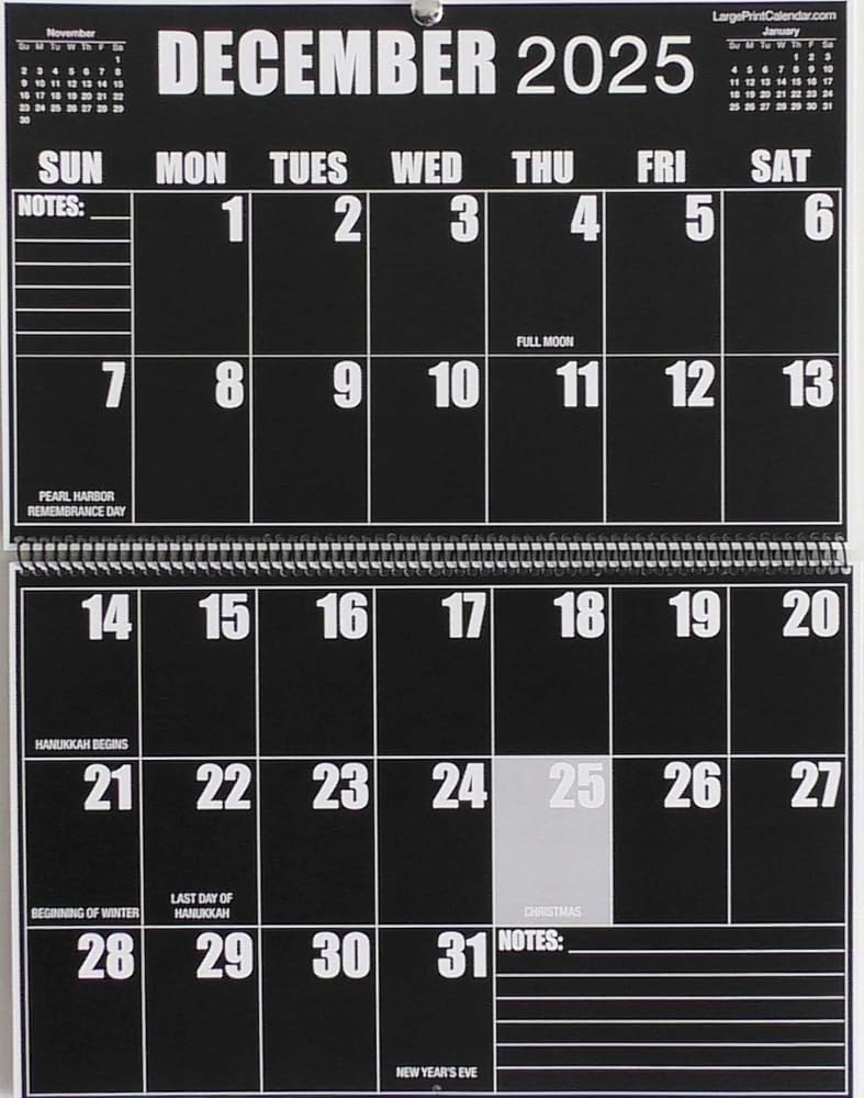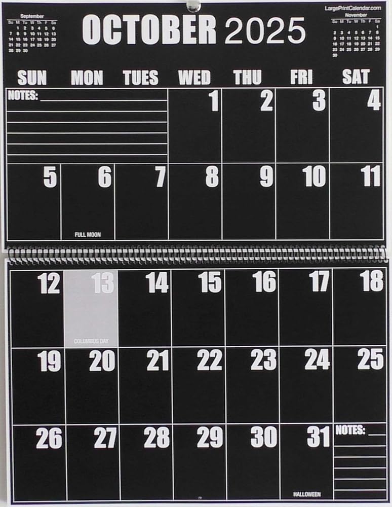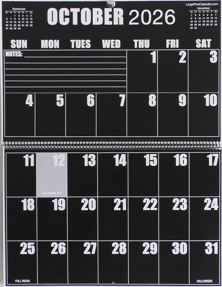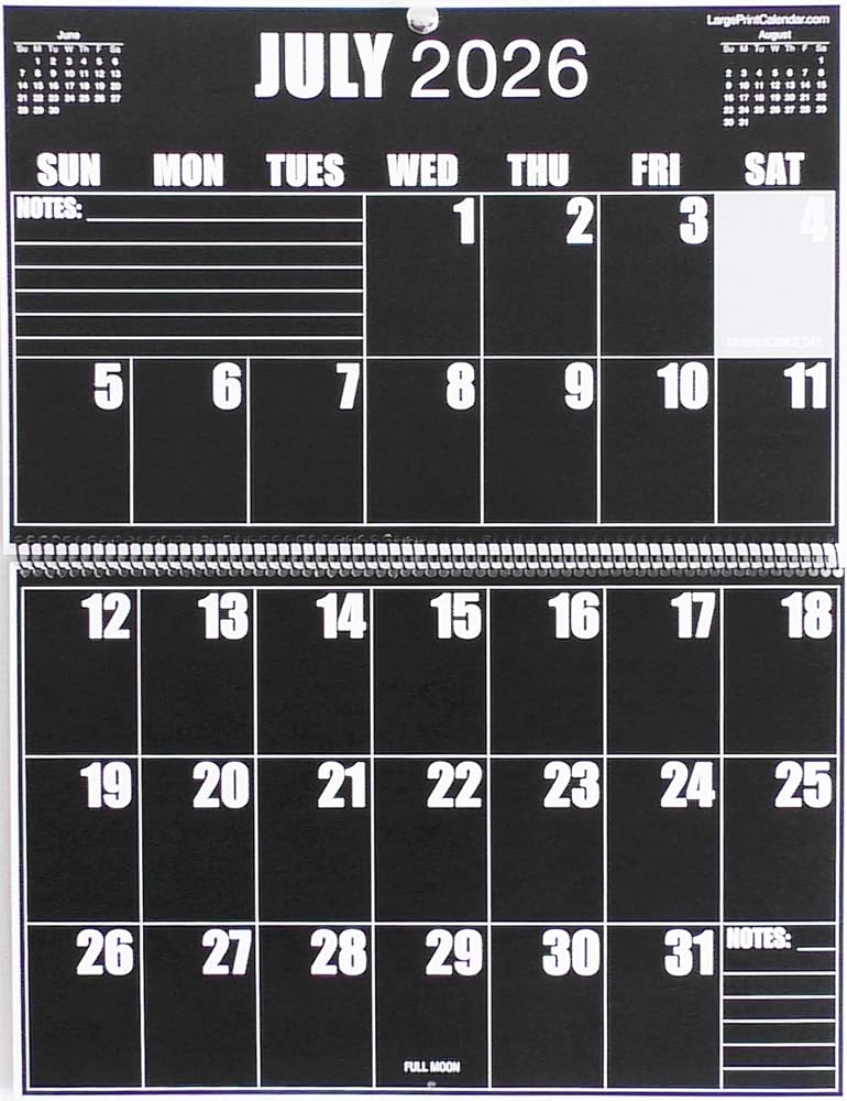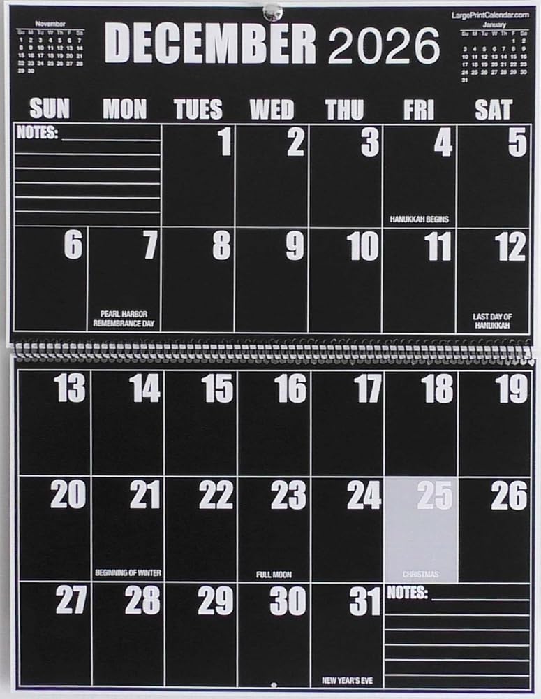 تقويم حائط معكوس عالي التباين | 19 شهرًا، يونيو 2025 إلى ديسمبر 2026 | طباعة كبيرة الحجم | 17 بوصة عرض × 22 بوصة طول عند الفتح