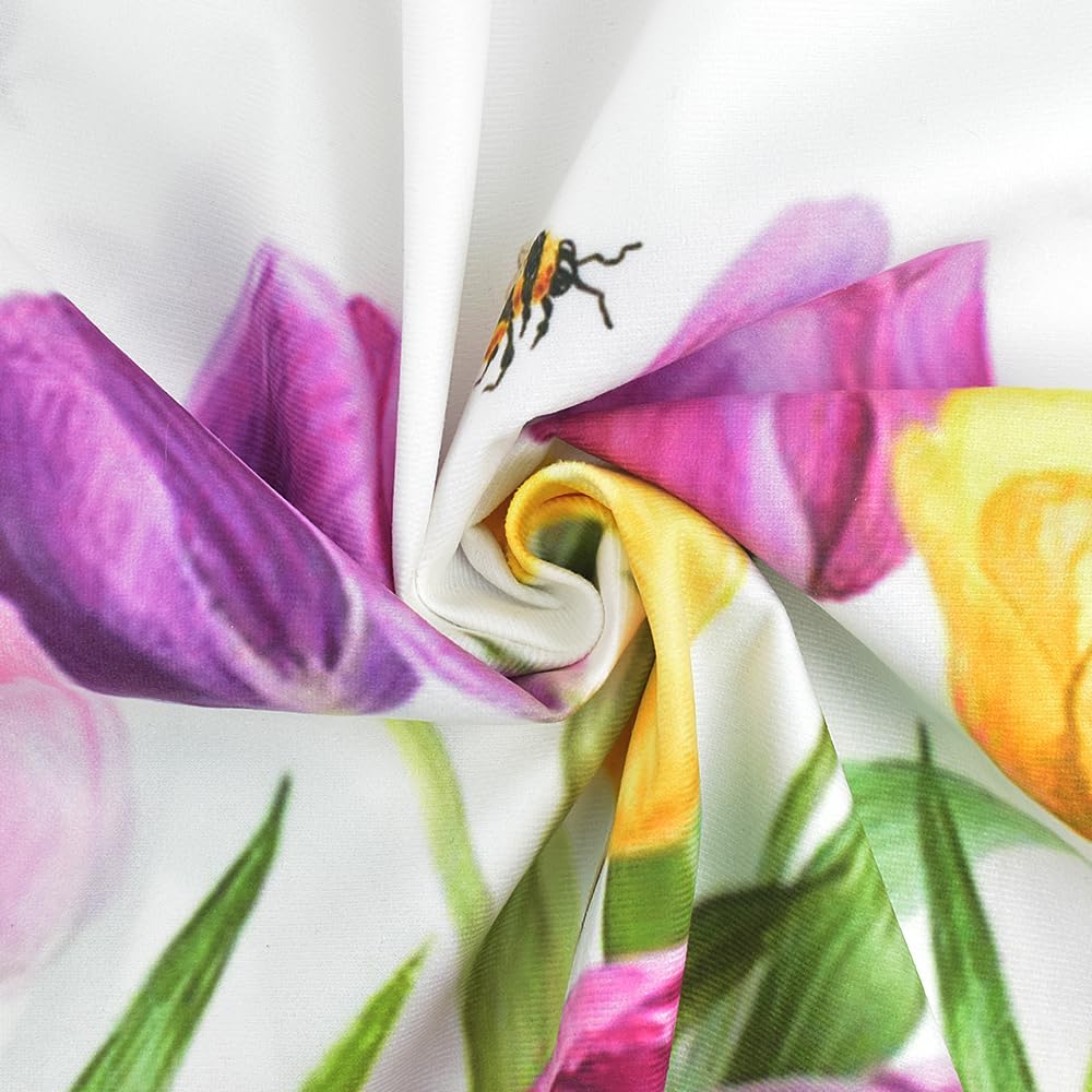 EASY CARE :This Spring tulips curtain is suitable for both hand washing and cold machine washing. It can be ironed, please do not use bleach.