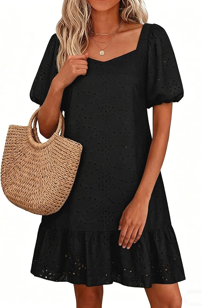 • الميزات: يتميز هذا الفستان غير الرسمي بأكمام منتفخة وفتحات مطرزة وجيوب، مع مقاس مريح.