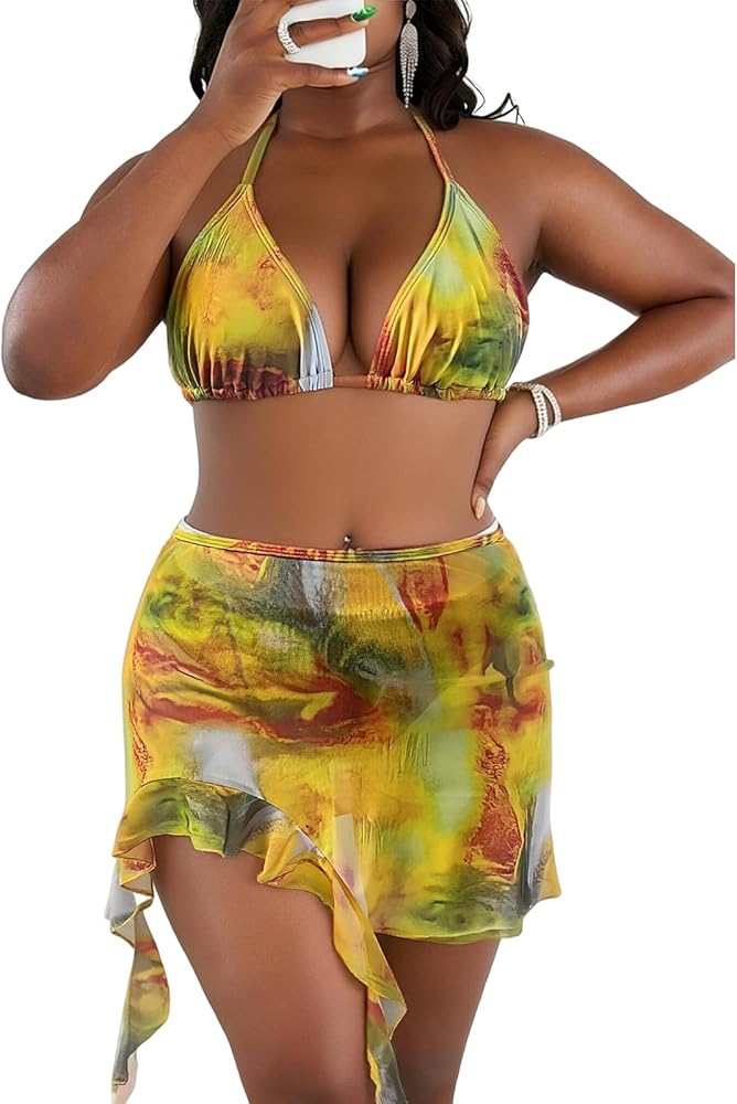 التصميم: بدلة سباحة نسائية بمقاس كبير تتميز بأشرطة قابلة للتعديل وحمالة صدر قابلة للإزالة للحصول على الدعم. بدلة سباحة بيكيني 3 قطع، طباعة زهور، بدلة سباحة مثلثة، تجعلك تبدو لامعة وساحرة حول الشاطئ أو أي مكان آخر لقضاء العطلات