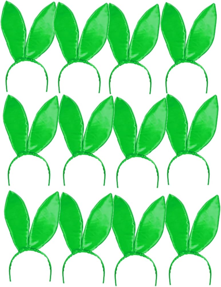 This posting includes: Set of 12 Green satin bunny ears as featured