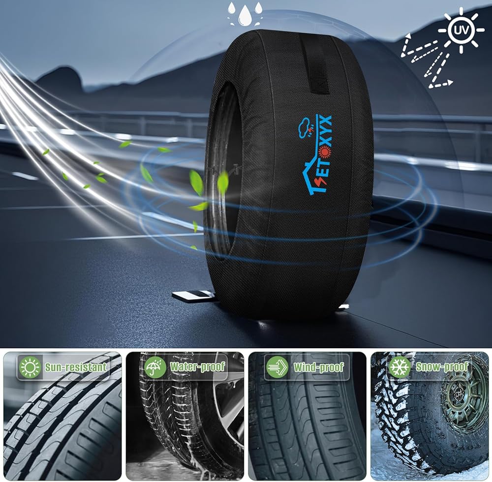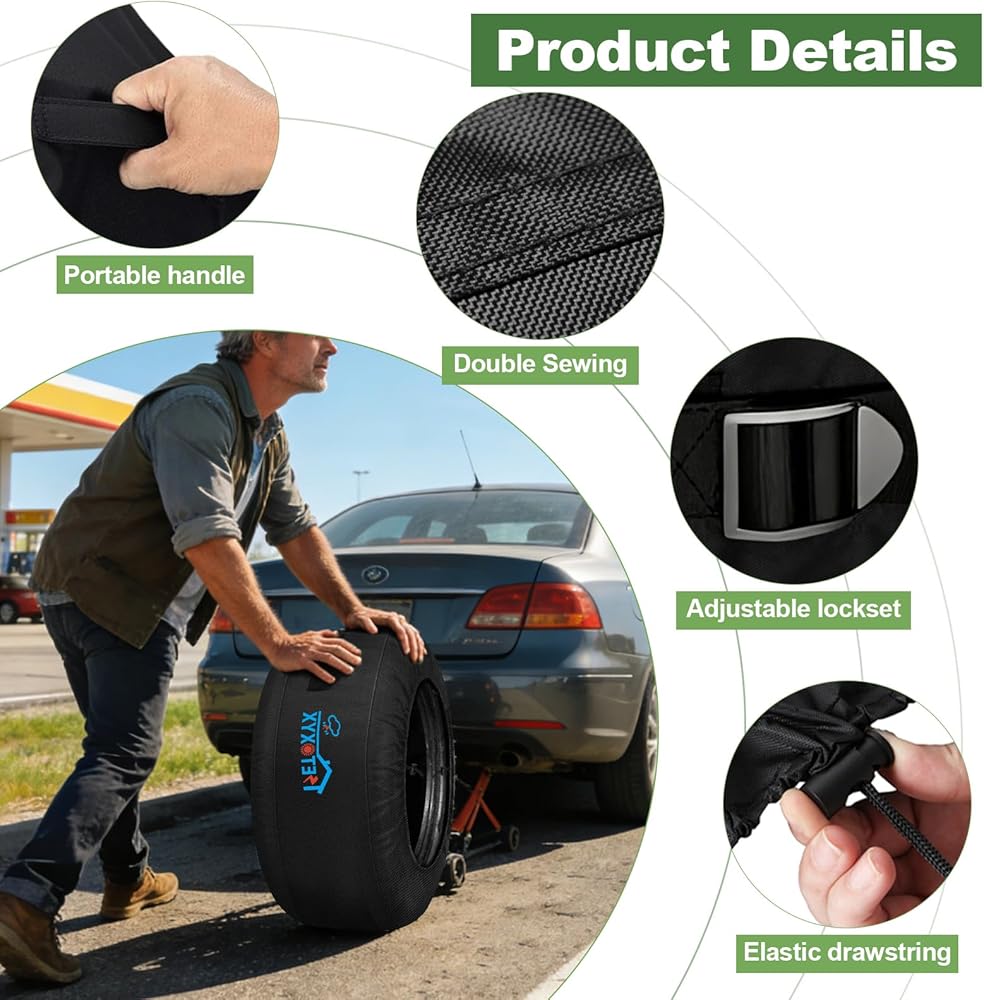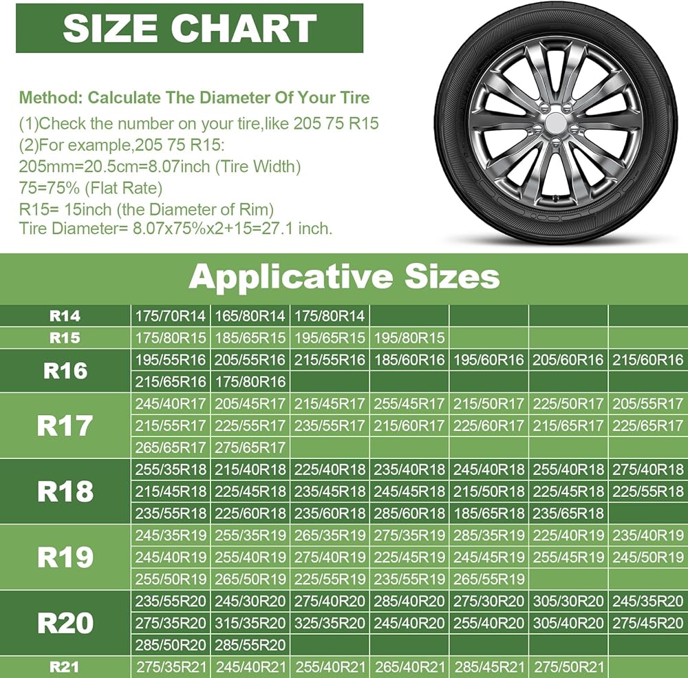 مناسبة للاستخدام متعدد الاستخدامات: مصممة لتناسب الإطارات التي يبلغ قطرها 22 بوصة - 31 بوصة (العرض الأقصى 8.7 بوصة)، تتوافق الحقيبة مع معظم إطارات سيارات الركاب والشاحنات وسيارات الدفع الرباعي وRV. نصائح: تذكر قياس قطر الإطار (وليس حجم الحافة) قبل الشراء.
