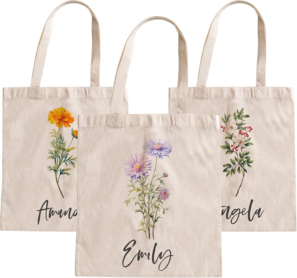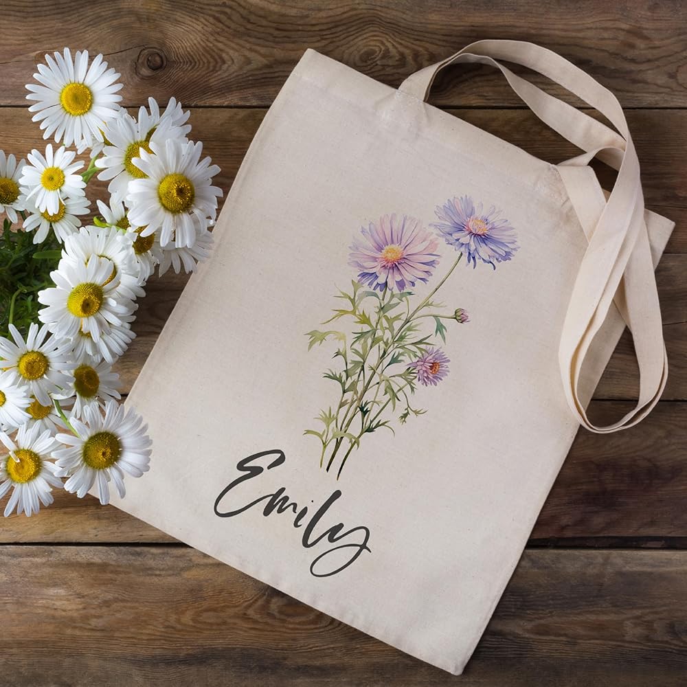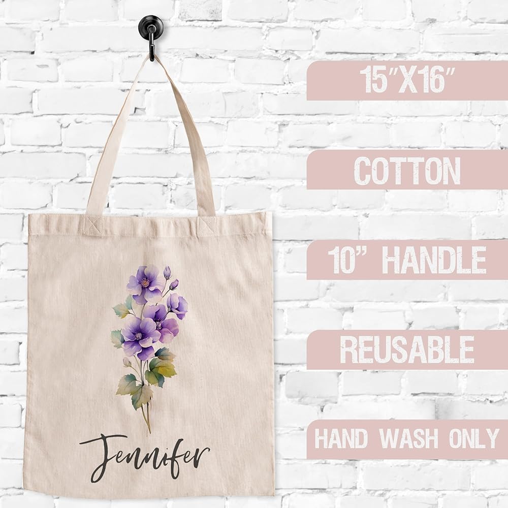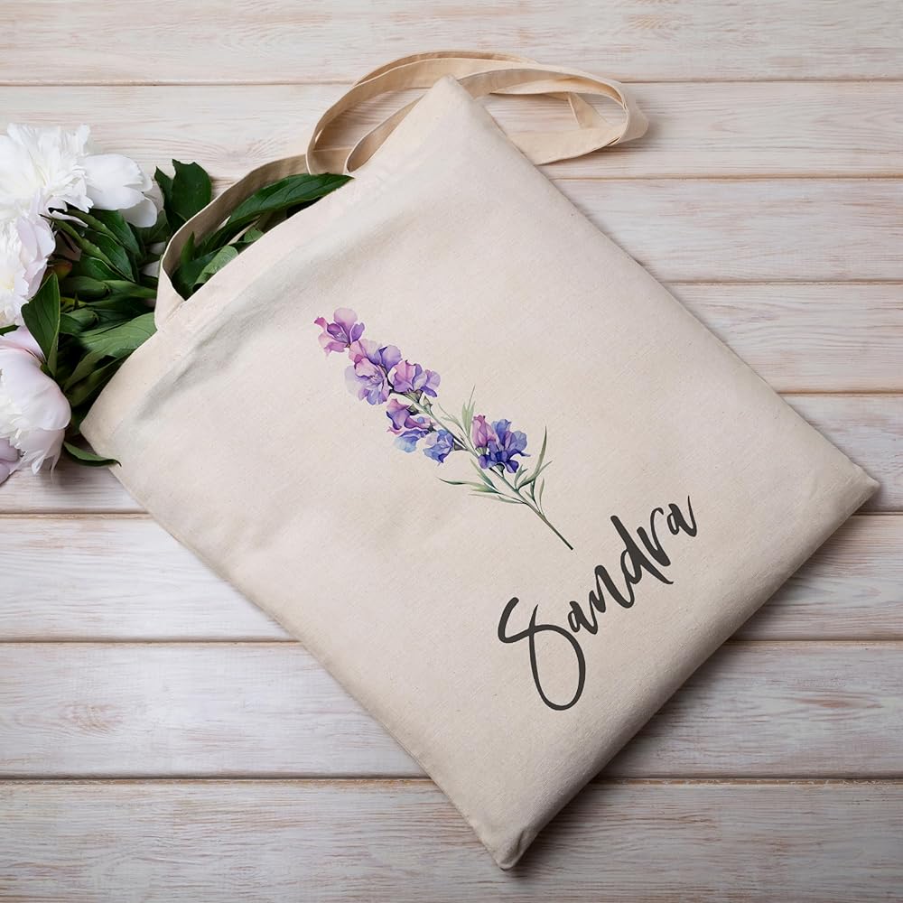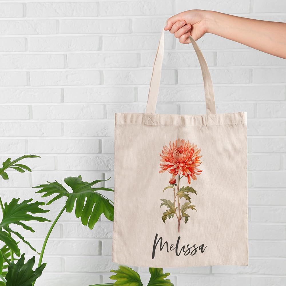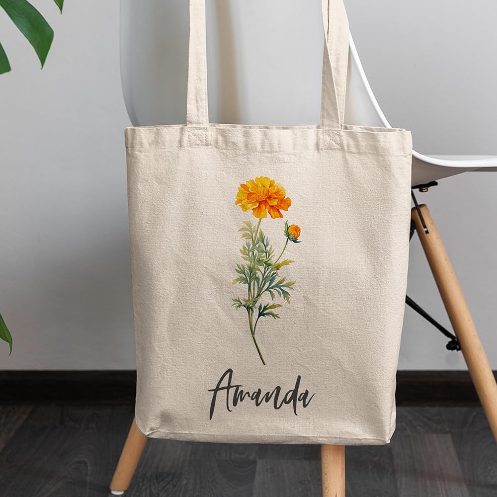 Custom Birth Flower Design: Choose from 12 beautiful birth flower designs to create a unique and meaningful tote bag tailored to the recipient's birth month.