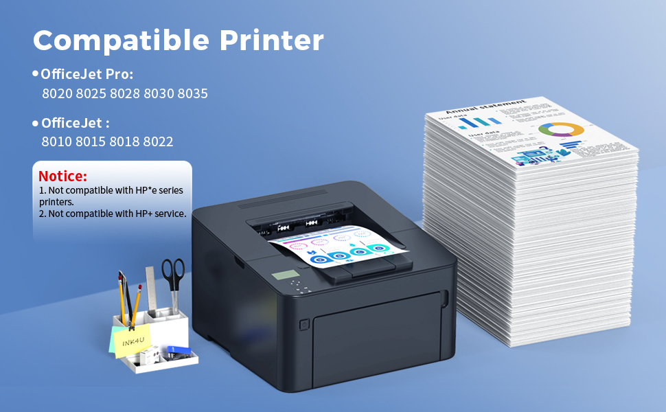 • 3. الطابعة المتوافقة: خراطيش الحبر INK4U 910xl متوفرة مع طابعات HP OfficeJet 8010 و8015 و8018 و8022 وHP OfficeJet Pro 8020 و8025 و8028 و8030 و8035