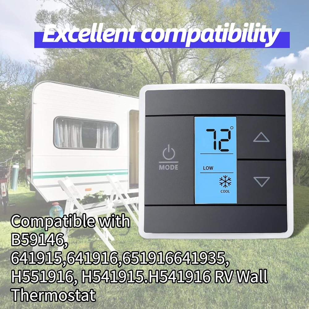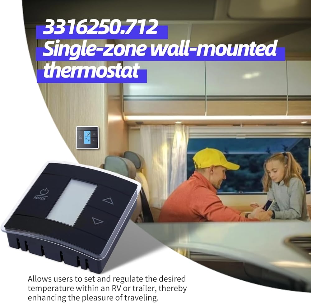 Upgrade your RV climate control with this Thermostat Replacement, engineered for seamless compatibility with air conditioning systems (model 3316250.712). Ideal for RV trailers and campers, this single-zone thermostat effortlessly manages heat/cool functions with capacitive touch technology—no physical buttons, just smooth fingertip operation.