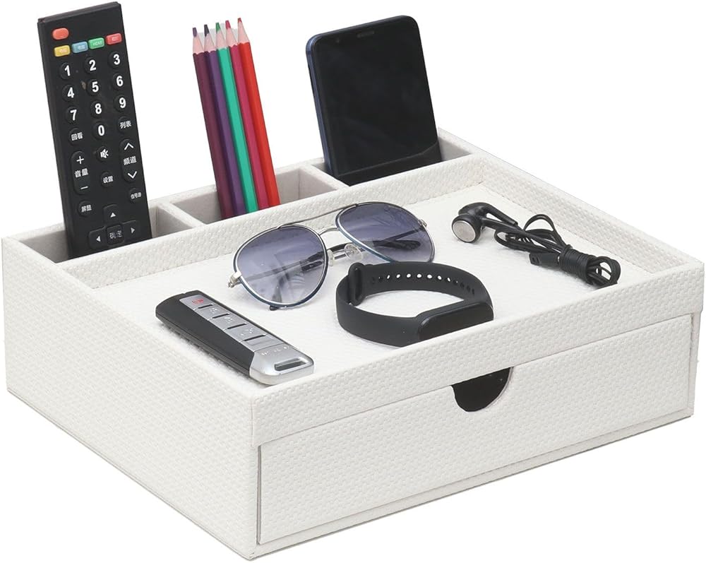 منظم سطح الطاولة متعدد الوظائف، هيكل خشبي، خارجي من الجلد المنسوج