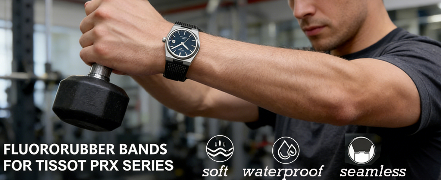 نقش بارز مربع فريد من نوعه: يتميز حزام الساعة المطاطي بنقش بارز مربع فريد من نوعه، وهو يكمل بشكل مثالي المظهر الجمالي الكلاسيكي لساعة Tissot PRX - مما يعزز مظهرها الفاخر دون أن يطغى عليه. يتوافق السيليكون الناعم والمرن مع معصمك دون الشعور بأي إزعاج، ومناسب للارتداء اليومي الكاجوال والمناسبات الرسمية، وهو ترقية متعددة الاستخدامات لكل ملابس