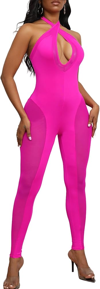 انقطاع مثير انظر من خلال تانك الأعلى رومبير شبكة المرقعة Bodycon بذلة قصيرة