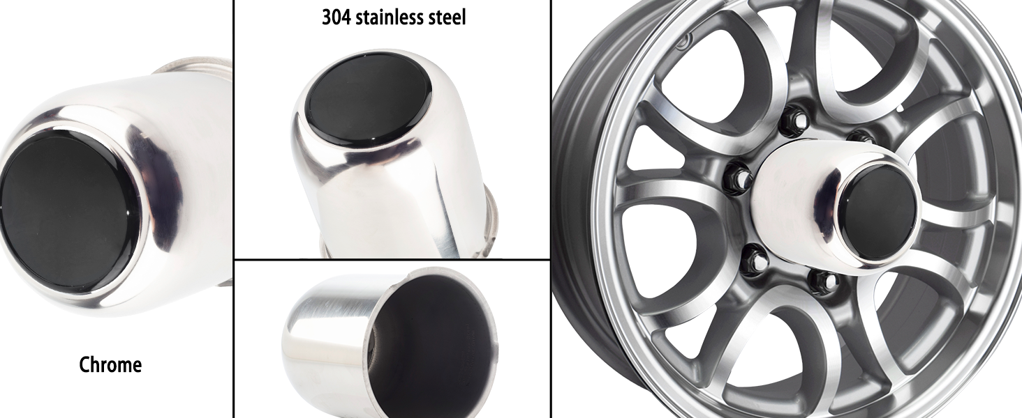 المادة - غطاء مركز العجلة مصنوع من الفولاذ المقاوم للصدأ، وهو مادة متينة ومقاومة للتآكل يمكنها تحمل مجموعة متنوعة من المناخات المعقدة. السطح كروم وأسود. هذه النهاية تعطي عجلاتك مظهرًا رائعًا. مقاومة للخدش وحساسة للمس.