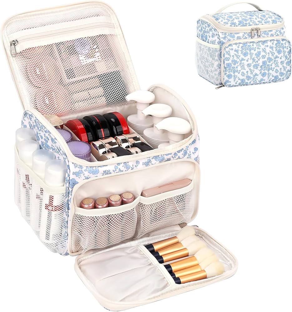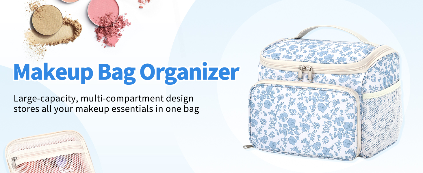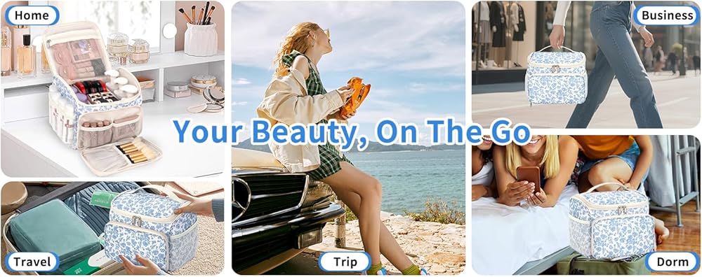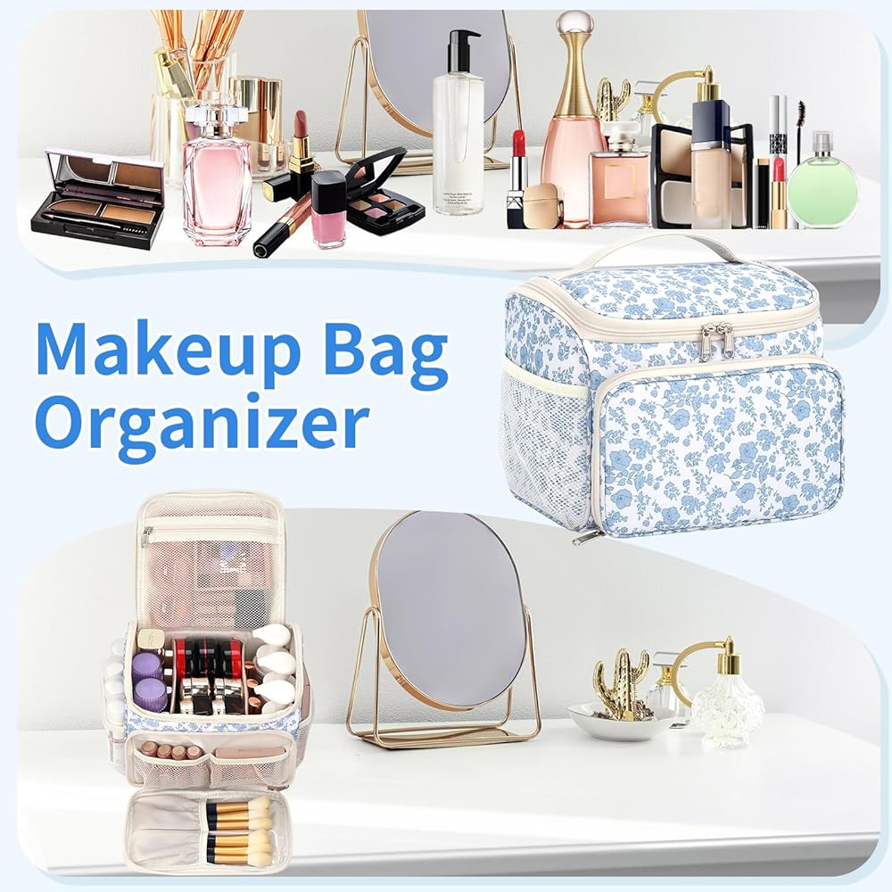 سهولة الوصول والحمل - الفتحة الكبيرة تسمح بسهولة الرؤية والوصول إلى جميع مستحضرات التجميل الخاصة بك؛ مصممة كحقيبة مكياج مريحة للسفر أو حقيبة أدوات الزينة للسفر بمقبض لسهولة الحمل أثناء التنقل