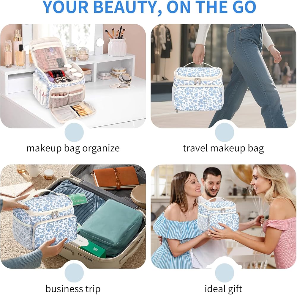 رفيق مثالي للسفر - تم تصميم حقيبة مستحضرات التجميل الزهرية هذه بشكل غني من أجل التطبيق العملي، مما يجعلها حقيبة أدوات الزينة المثالية ذات الأزهار أو حقيبة مكياج مبطنة للنساء للسفر أو عطلات نهاية الأسبوع أو كهدية مدروسة لأي مناسبة.