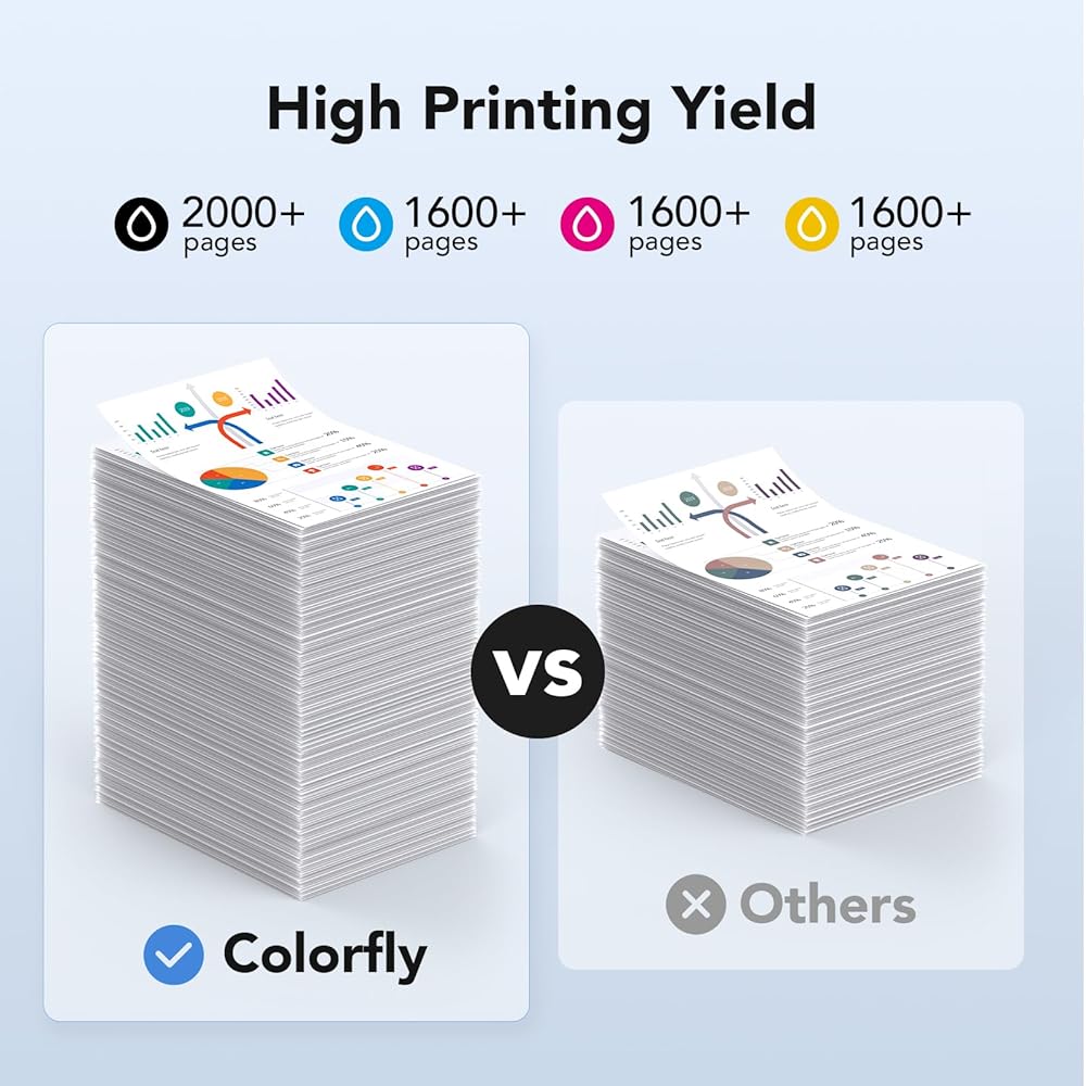 حجم الصفحة: لحبر HP 962 962xl يحتوي على ما يصل إلى 2000 صفحة لـ HP 962xl أسود و1600 صفحة لكل خراطيش حبر ملونة HP 962 962xl (سماوي وأرجواني وأصفر) بتغطية 5% لورق A4