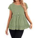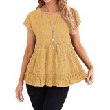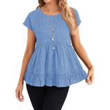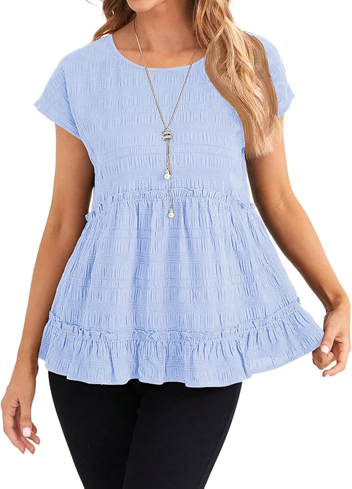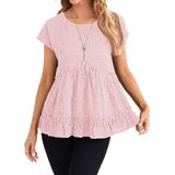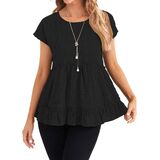 المزايا: قمصان بيبي دول، أكمام قصيرة، رقبة دائرية، حاشية مكشكشة، قمصان تونيك فضفاضة، كاجوال، طراز عصري، أساسي صلب، قمصان صيفية