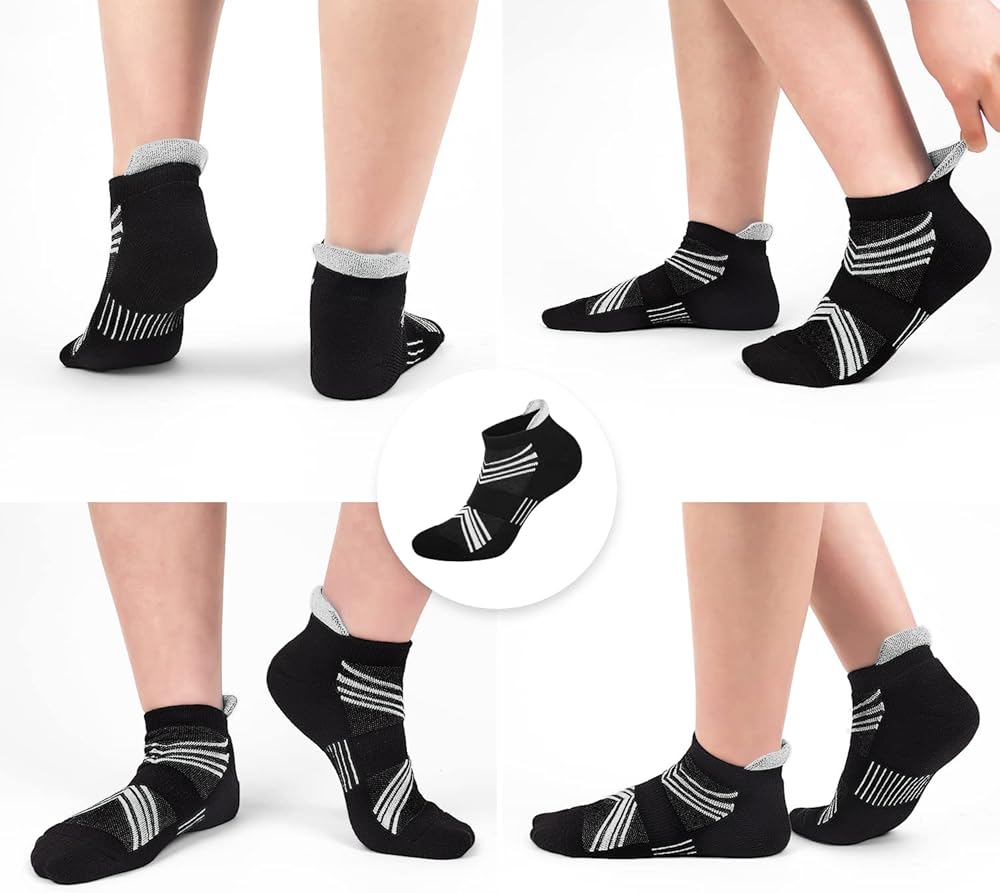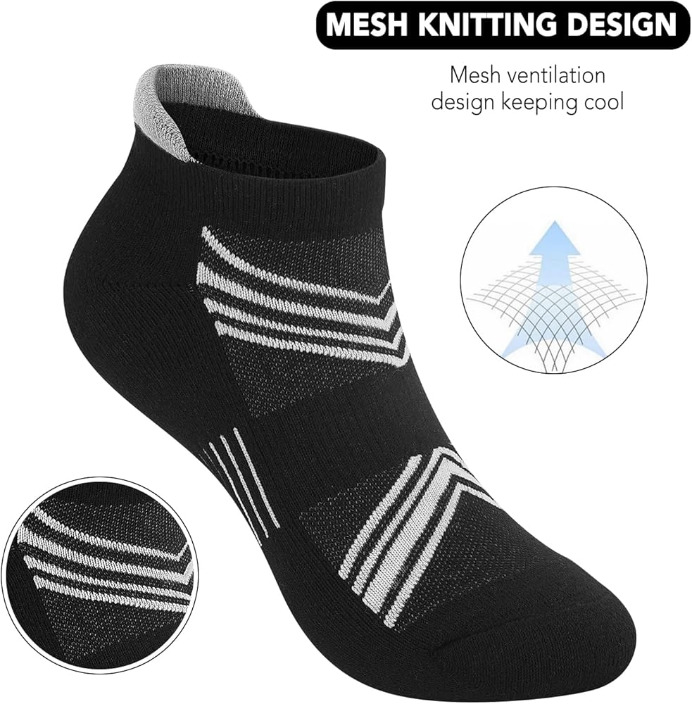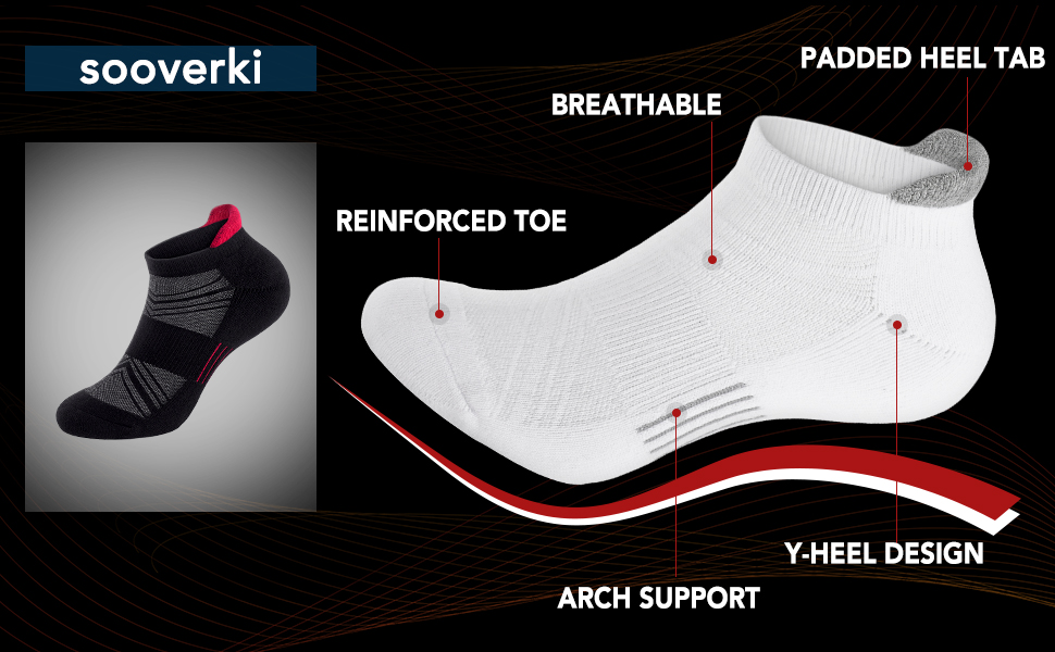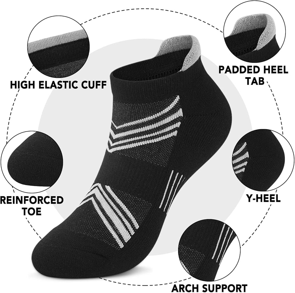 ارتفاع الكاحل والمنخفض - تتميز الجوارب الرياضية ذات القصة المنخفضة بكعب على شكل حرف Y مصمم جيدًا يضمن توافقًا جيدًا لجميع أحذيتك الرياضية المفضلة وأحذية الجري والأحذية الكاجوال والأحذية الرياضية وأحذية التمارين وأحذية التنزه سيرًا على الأقدام. تمنع ظهور البثور والاحتكاك مع تحسين الراحة العامة.