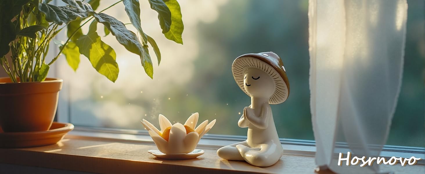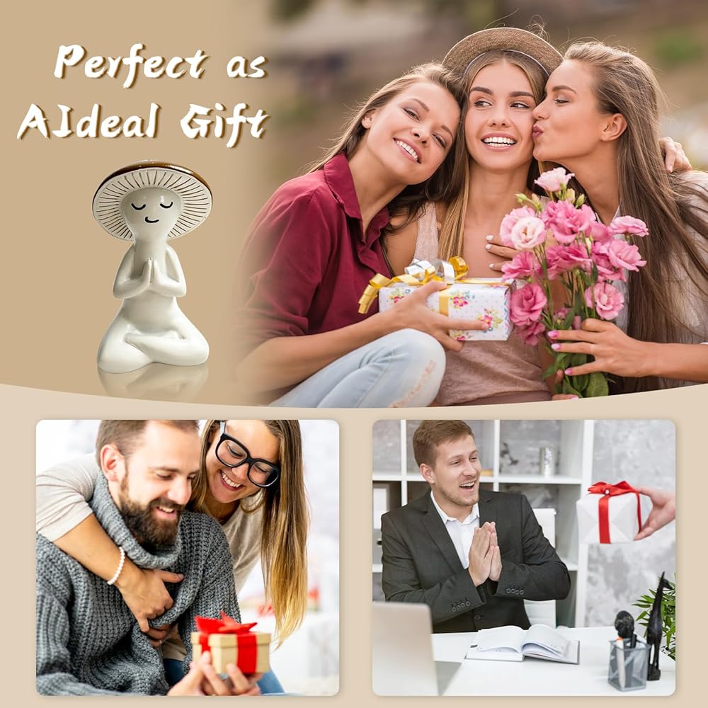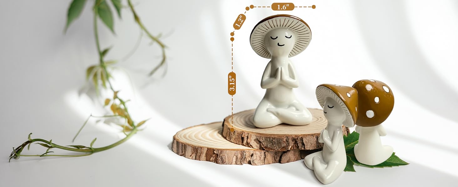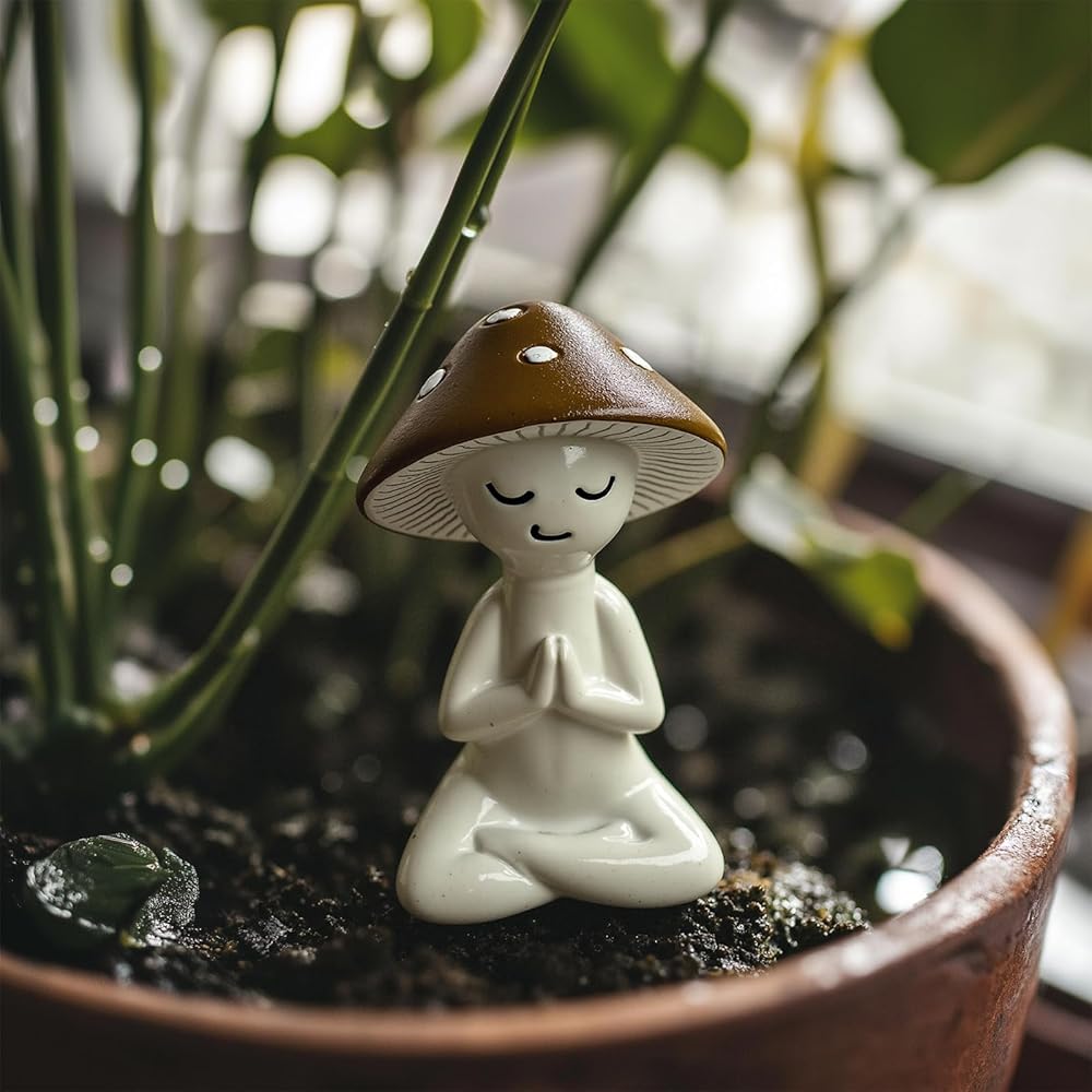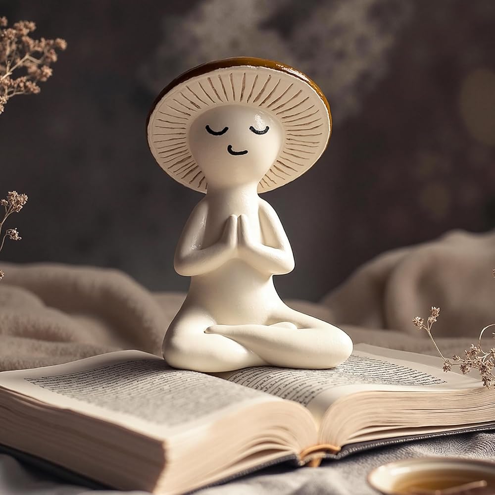 تصميم فريد: تمثال الفطر الرائع هذا مصنوع بدقة من الراتنج عالي الجودة، ويلتقط كل التفاصيل بدقة نابضة بالحياة مذهلة. تتميز بوضعية تأمل هادئة مع ضم اليدين، فهي تبعث طاقة هادئة تكمل بشكل مثالي أي ديكور غريب الأطوار أو مستوحى من الطبيعة.