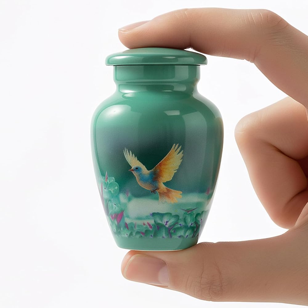 حجم مثالي لمشاركة الذكريات: يبلغ طوله حوالي 3 بوصات (حوالي حجم شاكر الملح)، يحمل هذا التذكار جزءًا صغيرًا من الرماد، أو خصلة من الشعر، أو حتى التربة من مكان الراحة. تقوم العديد من العائلات بشراء العديد منها لمشاركتها بين الأشقاء أو لنثر الرماد في مكان ذي معنى مع إبقاء البعض بالقرب من المنزل.