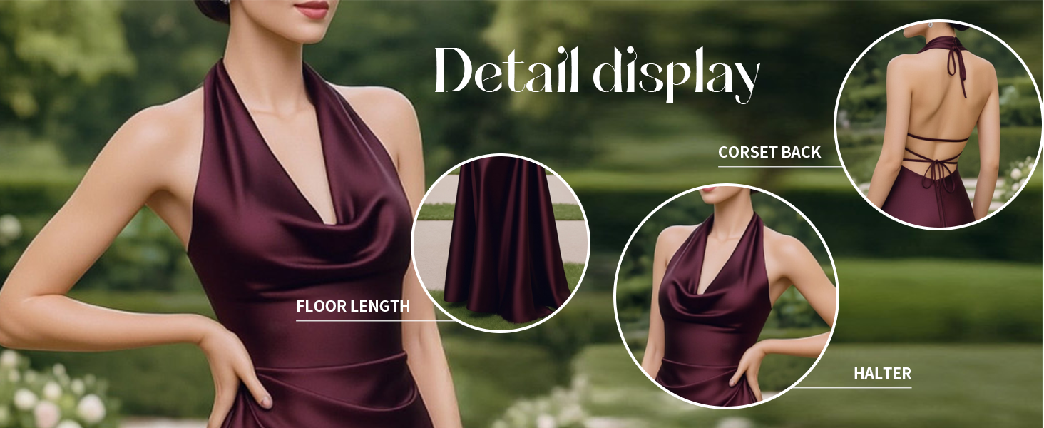 المزايا: رسن، خط على شكل حرف A، خصر إمبراطوري، مع جيب، ساتان، طويل/طول يصل إلى الأرض، مشد، بدون ظهر/ظهر مفتوح، حمالة صدر مدمجة، بأربطة من الخلف، متعدد الألوان