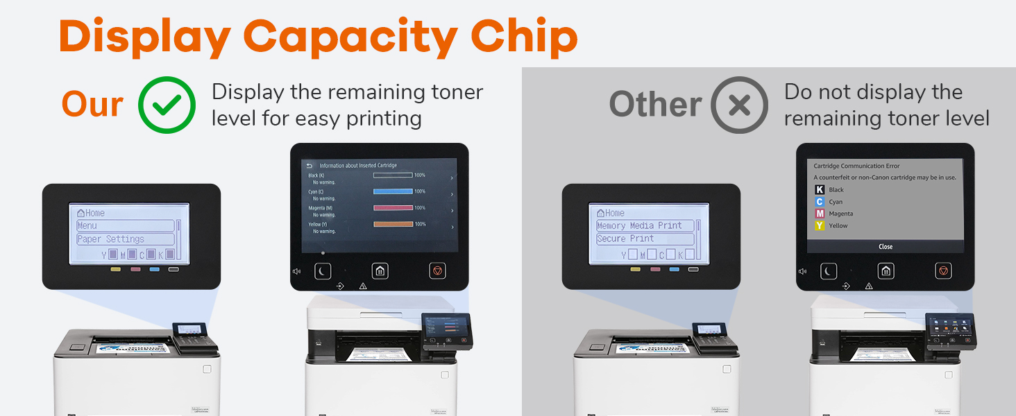 شريحة سعة العرض: مصممة بتقنية الرقاقة المتقدمة ومتوافقة مع مجموعة خراطيش الحبر Canon 067، يمكنها التحقق من مستوى الحبر المتبقي للخرطوشة في الوقت الحقيقي لتجنب انقطاع الطباعة