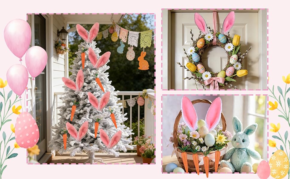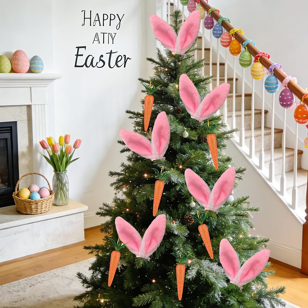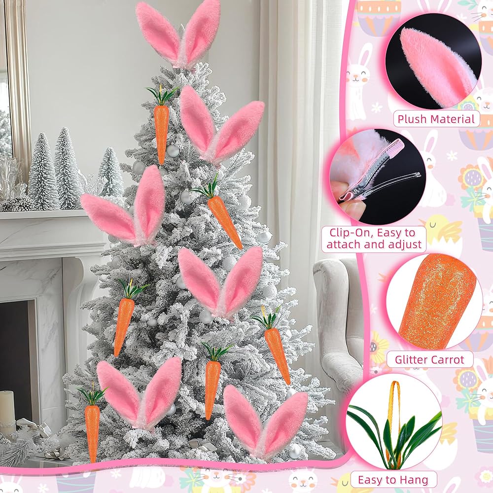 متين وسهل الاستخدام: مصنوع من مواد عالية الجودة للاستخدام الدائم. تأتي كل أذن أرنب مع مشبك عملي للربط الآمن والقابل للتعديل بأغصان الأشجار، بينما تتميز كل جزرة بخيط تعليق مناسب. إنها خفيفة الوزن ومقاومة للبهتان، ومناسبة للديكور الداخلي والخارجي.