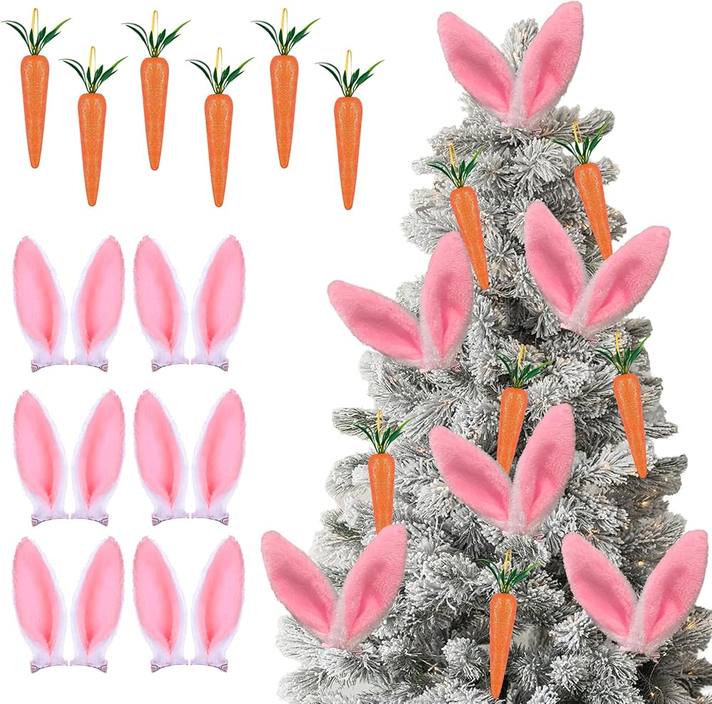 مجموعة تزيين شجرة عيد الفصح: تتضمن مجموعة تزيين عيد الفصح هذه 6 أزواج من أذن الأرنب الوردية والبيضاء المنفوشة و6 زخارف جزر صفراء لامعة. مثالية لإضافة لمسة احتفالية وساحرة لشجرة عيد الفصح الخاصة بك.