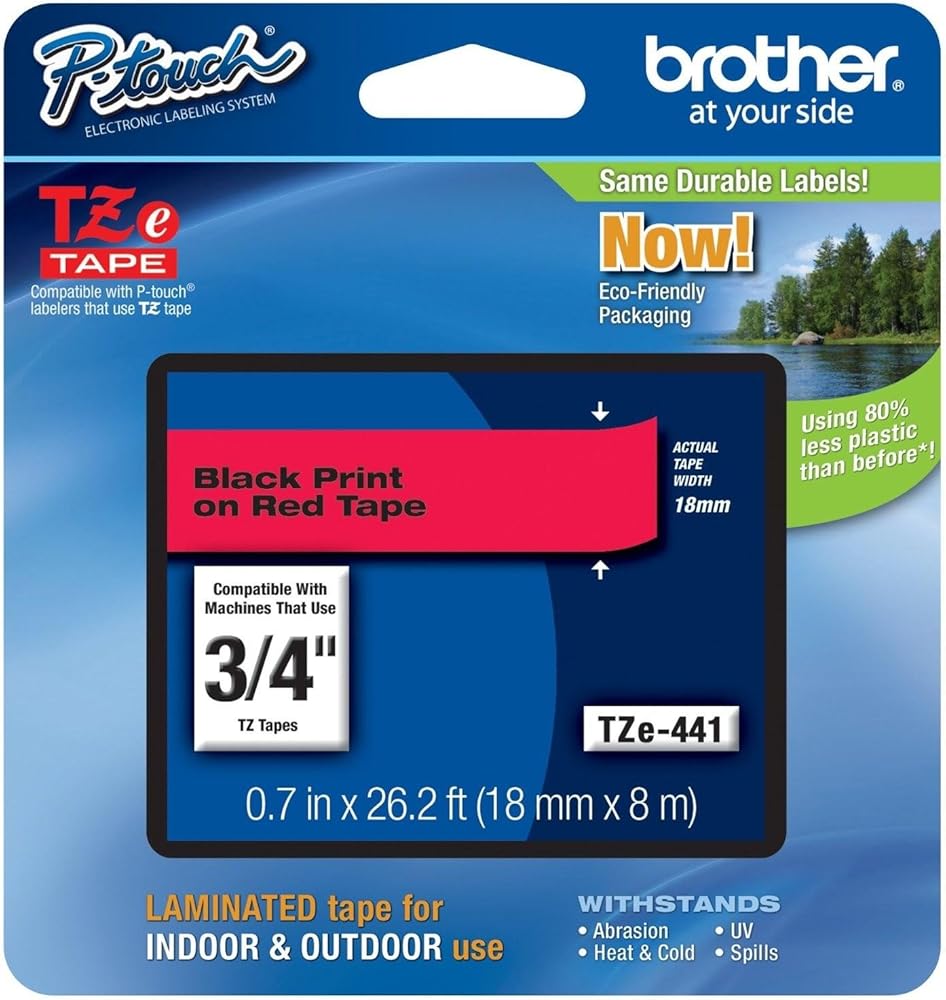 Brother 3/4 بوصة × 26.2 قدم أسود على أحمر لجهاز P-Touch (TZ441)