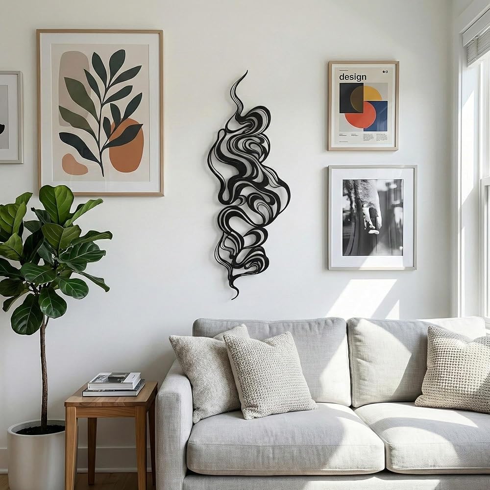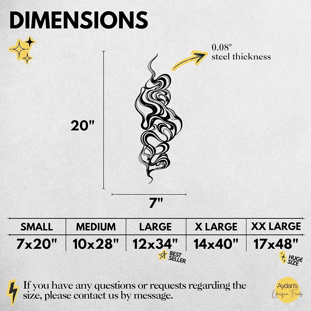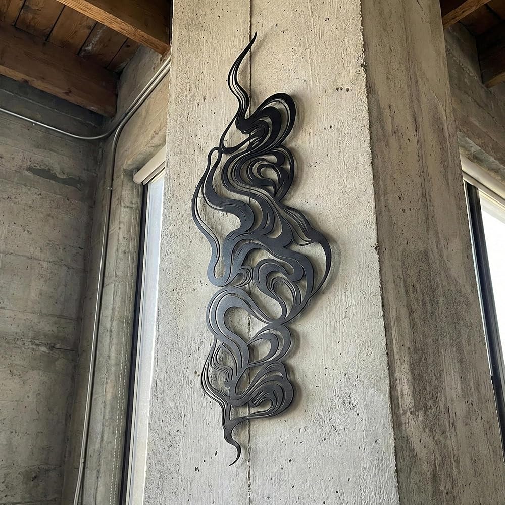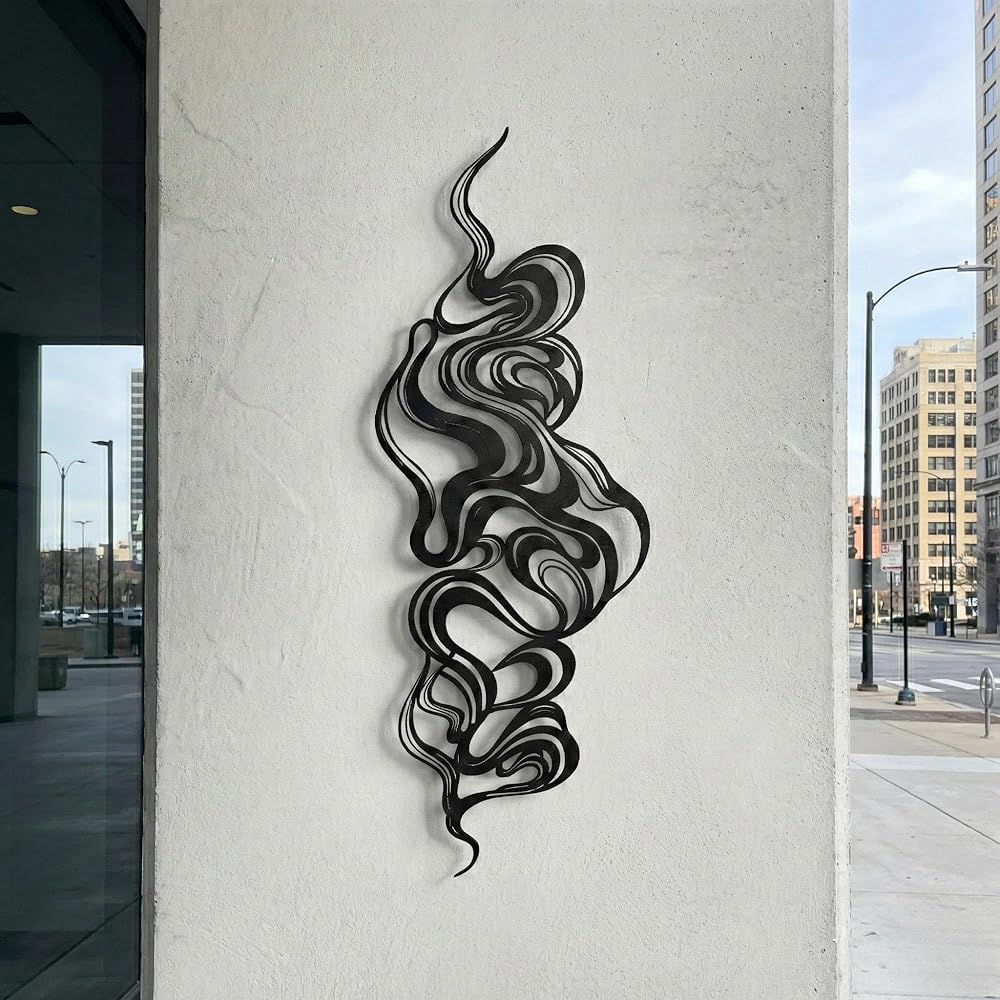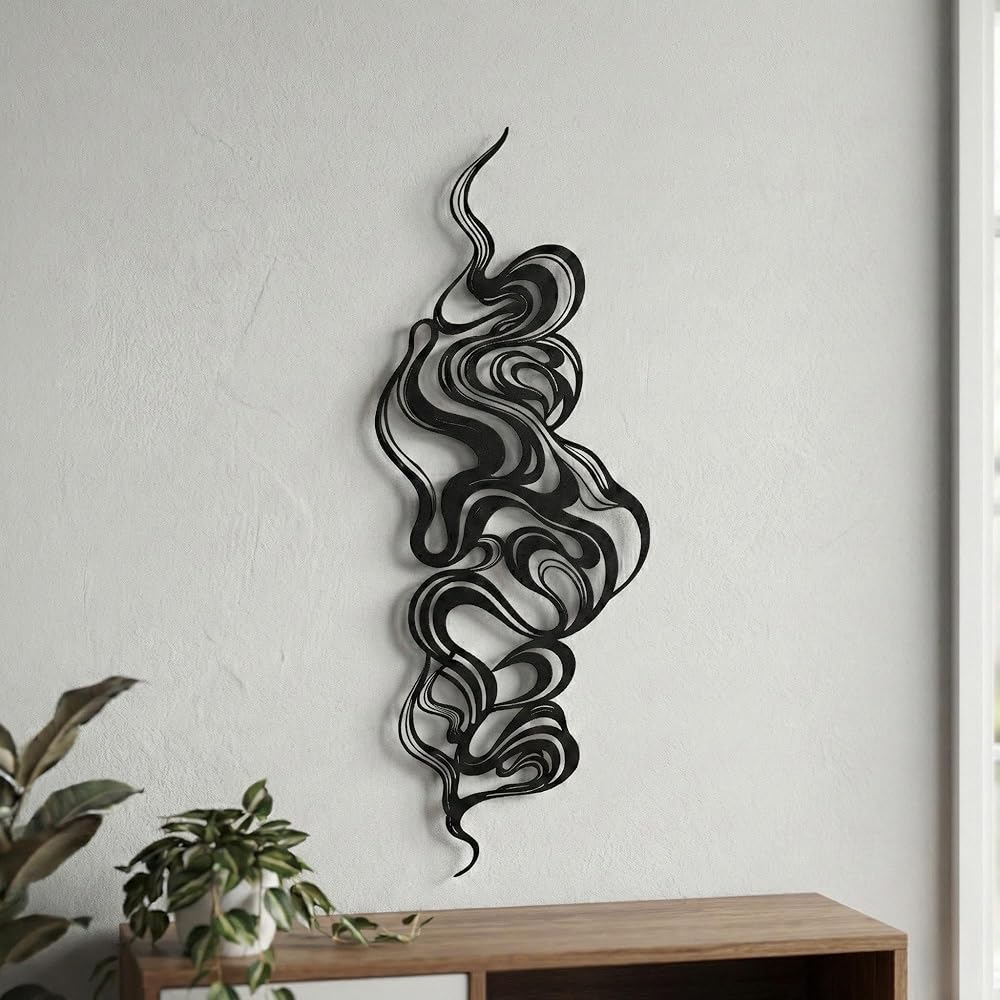 Embrace the beauty of fluid motion with this elegant abstract smoke metal wall art. Featuring graceful, flowing curves and swirling forms that evoke the mesmerizing movement of rising smoke, this piece brings a sense of calm, mystery, and artistic depth to any space. Crafted from premium metal with a sophisticated matte black finish, this fluid art wall decor adds a sculptural, three-dimensional quality to modern, minimalist, contemporary, and artistic interiors. The organic flowing design creates a stunning visual rhythm that draws the eye upward. Precision laser-cut technology captures every delicate curve and flowing transition with remarkable smoothness and clean edges. The durable metal construction and quality protective coating ensure this piece maintains its elegant appearance for years of indoor and outdoor display. Ideal for living rooms, hallways, bedrooms, offices, and gallery walls, this abstract wall hanging also makes a sophisticated gift for art enthusiasts, modern decor lovers, and anyone who appreciates minimalist yet impactful design. A wonderful choice for housewarmings, birthdays, and celebrations of refined taste.