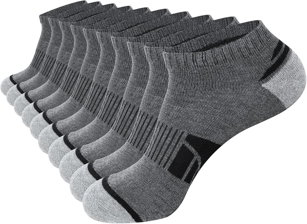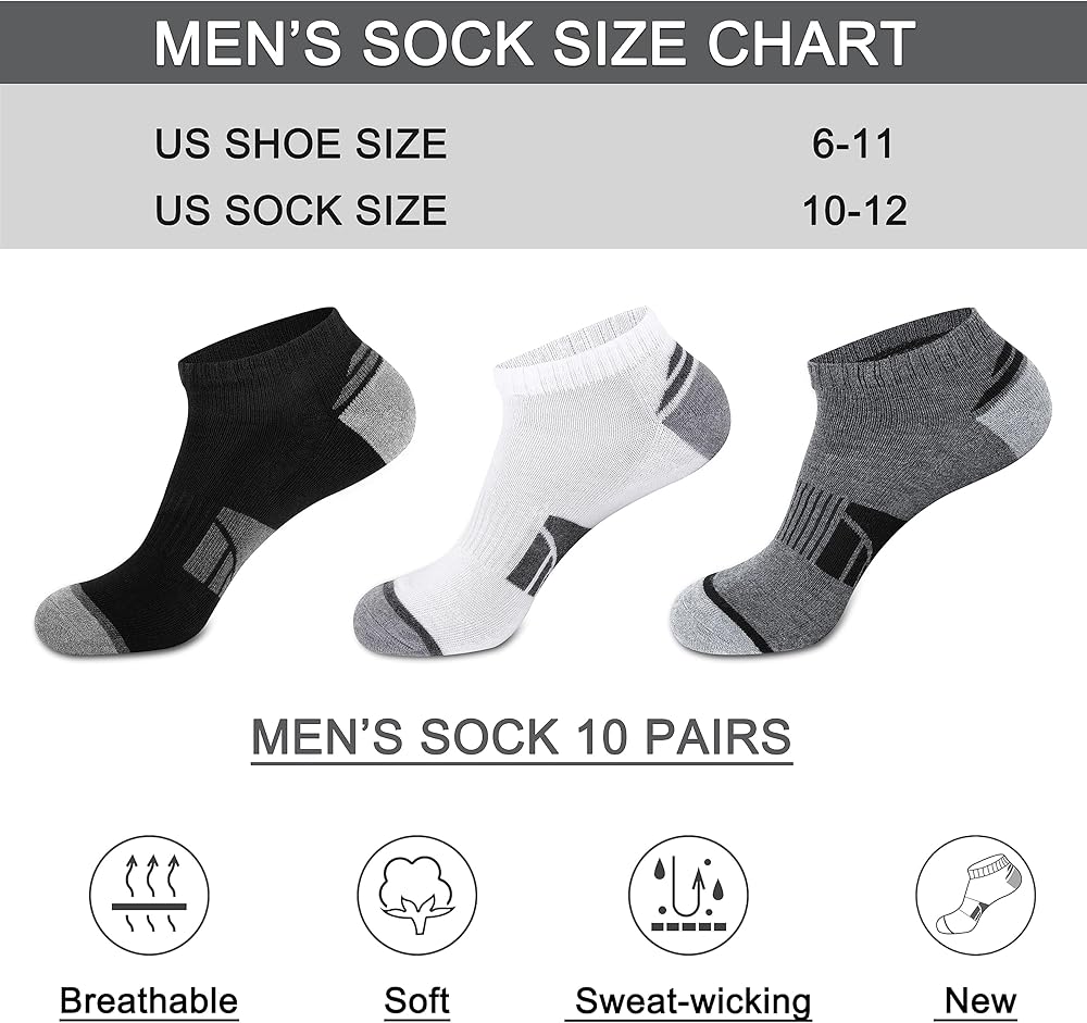• جوارب الكاحل للرجال - 10 أزواج من الجوارب القصيرة للرجال بثلاثة ألوان حسب اختيارك. نعال مبطنة وأصابع القدم والكعب المعززة تعمل على تحسين الراحة.