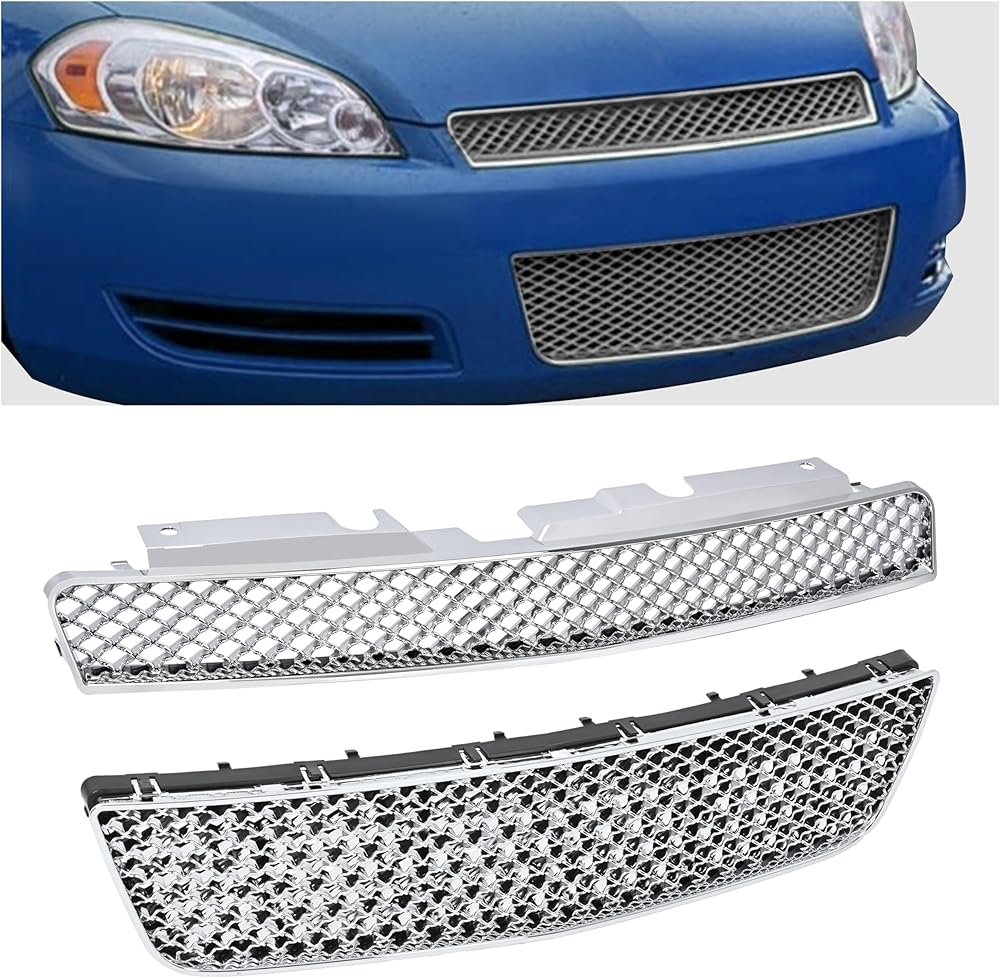 المصد الأمامي KUAFU العلوي + الشواية السفلية المتوافقة مع غطاء محرك السيارة تشيفي إمبالا 2006-2016، غطاء حماية فضي