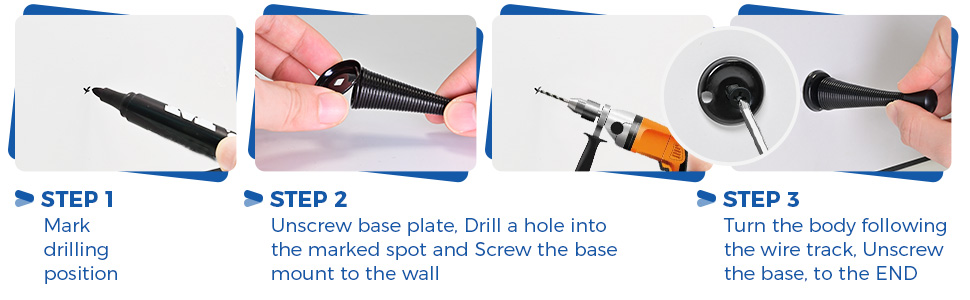تركيب بدون مجهود: يتم تركيبه في أقل من دقيقة؛ تشتمل كل محطة باب على براغي وأدوات تثبيت وقواعد لسهولة الإعداد. استخدمي مفك براغي أو مثقاب لتثبيته على ألواح القاعدة أو الأبواب، مع المرساة المتضمنة مما يجعله مناسبًا للجدران الخرسانية أيضًا.