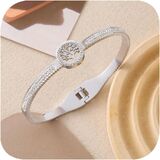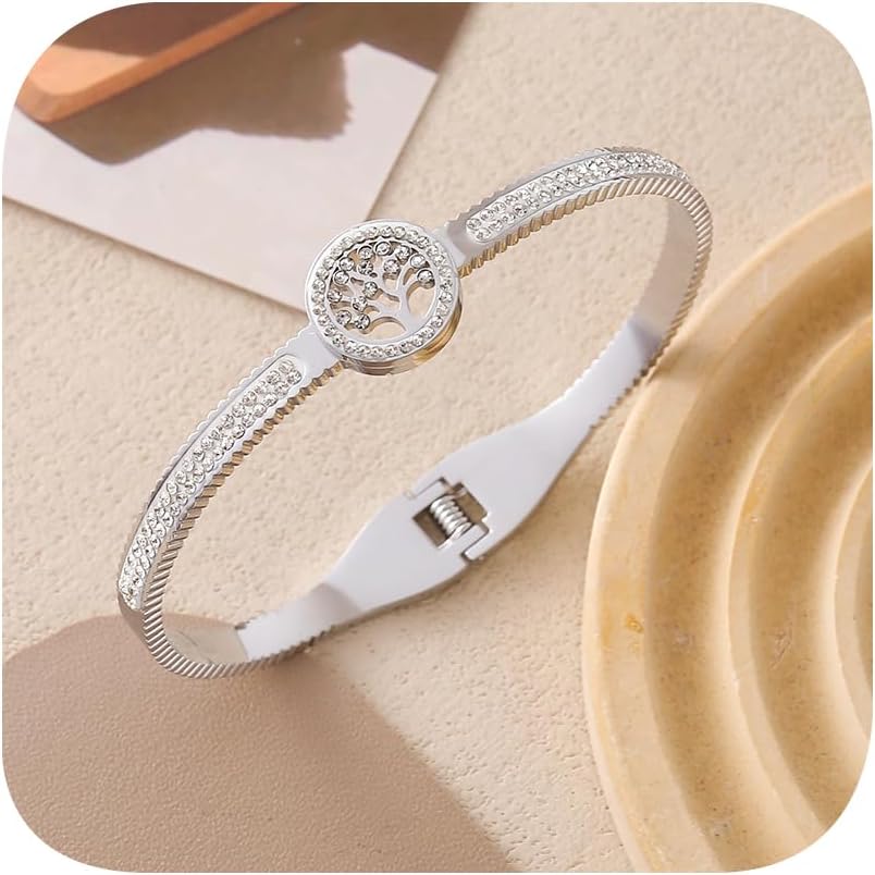 أساور مطلية بالذهب عيار 14 قيراط للنساء، أساور فضة عيار 925 مكعبة من الزركون على شكل شجرة الحياة للنساء، سوار ذهبي عصري مكتنز، هدايا مجوهرات بذراع مفصلية بسيطة (فضي)