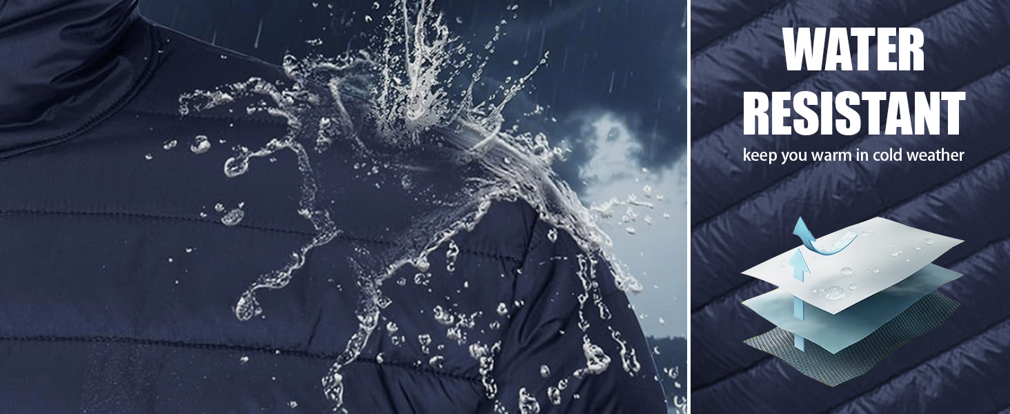 غلاف مقاوم للماء: ابق جافًا ومرتاحًا في الرذاذ غير المتوقع أو الظروف الرطبة. الجزء الخارجي المقاوم للماء لهذا الجاكيت المنتفخ يتخلص من الرطوبة، مما يجعله خيارًا رائعًا للتنقلات اليومية أو المغامرات الخارجية
