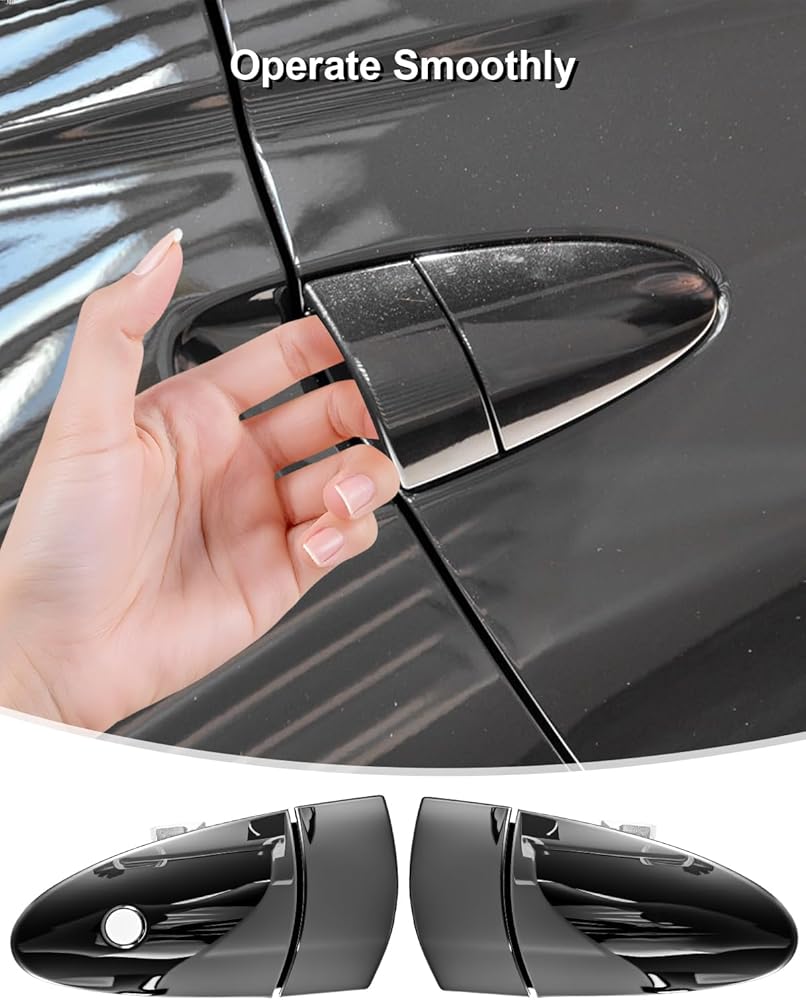 سهلة الفتح، تعمل بسلاسة: تتميز مقابض الأبواب بتصميم فتحة قياسية وتعمل بسلاسة، فقط اسحبها بلطف لفتح الباب بسلاسة، مما يسمح لك ولعائلتك بالدخول بسرعة إلى السيارة وتوفر لك تجربة مستخدم مريحة وسلسة.
