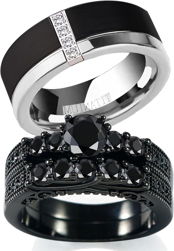 Womens ring is black gold plated round cut 1ct 6*6mm Black cz mainstone wedding ring sets.
