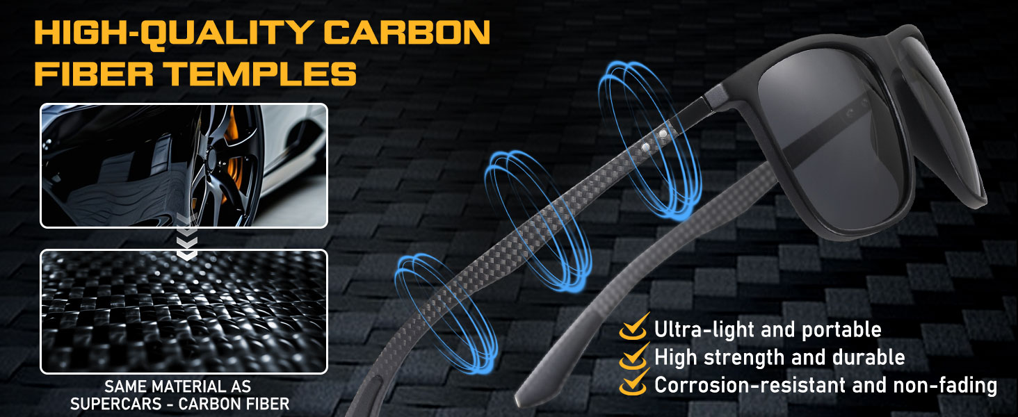 【ألياف الكربون + مادة TR90】جرب قوة أرجل ألياف الكربون جنبًا إلى جنب مع مرونة إطار TR90. أقوى من الفولاذ، وأخف وزنًا من الألومنيوم - يضمن هذا المزيج من المواد الممتازة المتانة دون التضحية بالراحة.