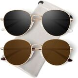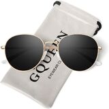 GQUEEN ريترو النظارات الشمسية المستقطبة المستديرة للنساء الرجال الربيع المفصلي الإطار المعدني العصرية الهبي البيضاوي نظارات شمسية ظلال UV400 in Kuwait