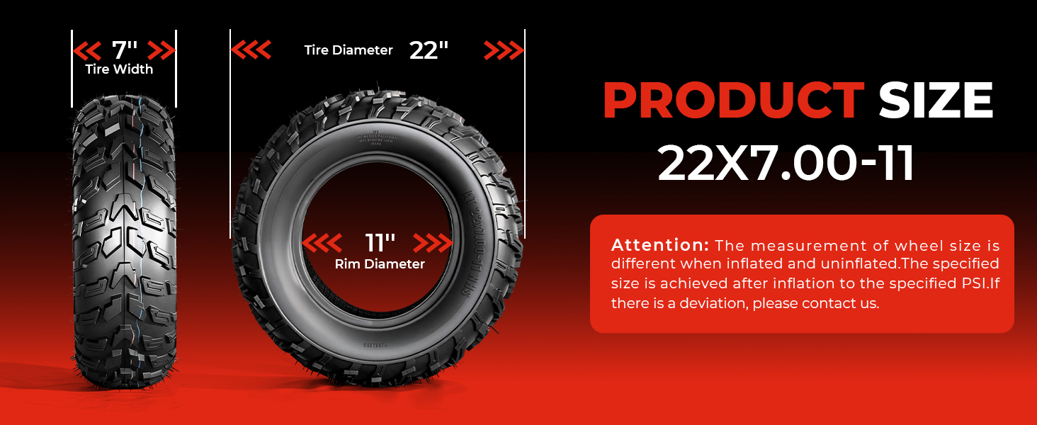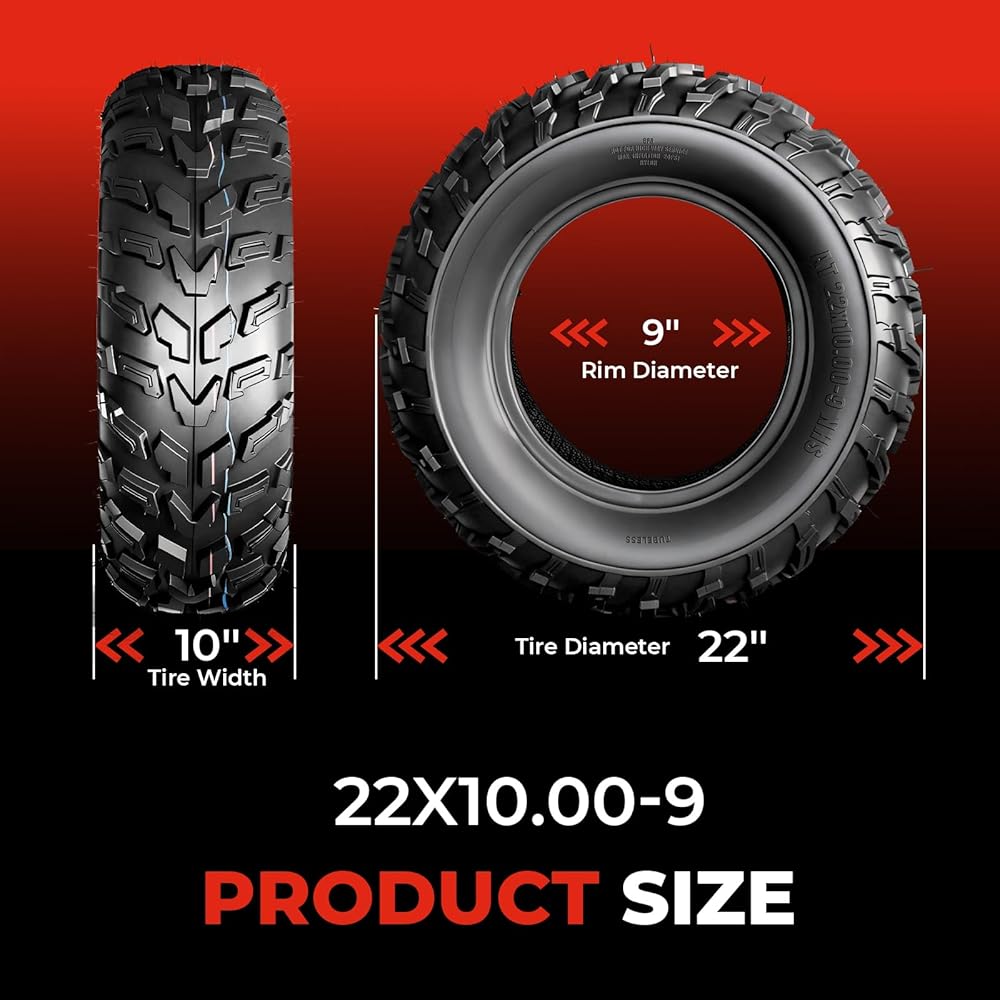 • معلمات إطارات ATV UTV لجميع التضاريس: الإطار الأمامي 22x7-11 (عمق المداس: 10 مم، عرض الحافة: 5.5 بوصة، قطر الحافة: 11 بوصة، الحمولة القصوى: 264 رطلاً، مؤشر السرعة F، Psi: 24، بدون أنبوب). الإطار الخلفي 22x10-9 (عمق المداس: 14 مم، عرض الحافة: 8 بوصة، قطر الحافة: 9 بوصة، الحمولة القصوى: 285 رطل، مؤشر السرعة F، Psi: 24، بدون أنبوب).