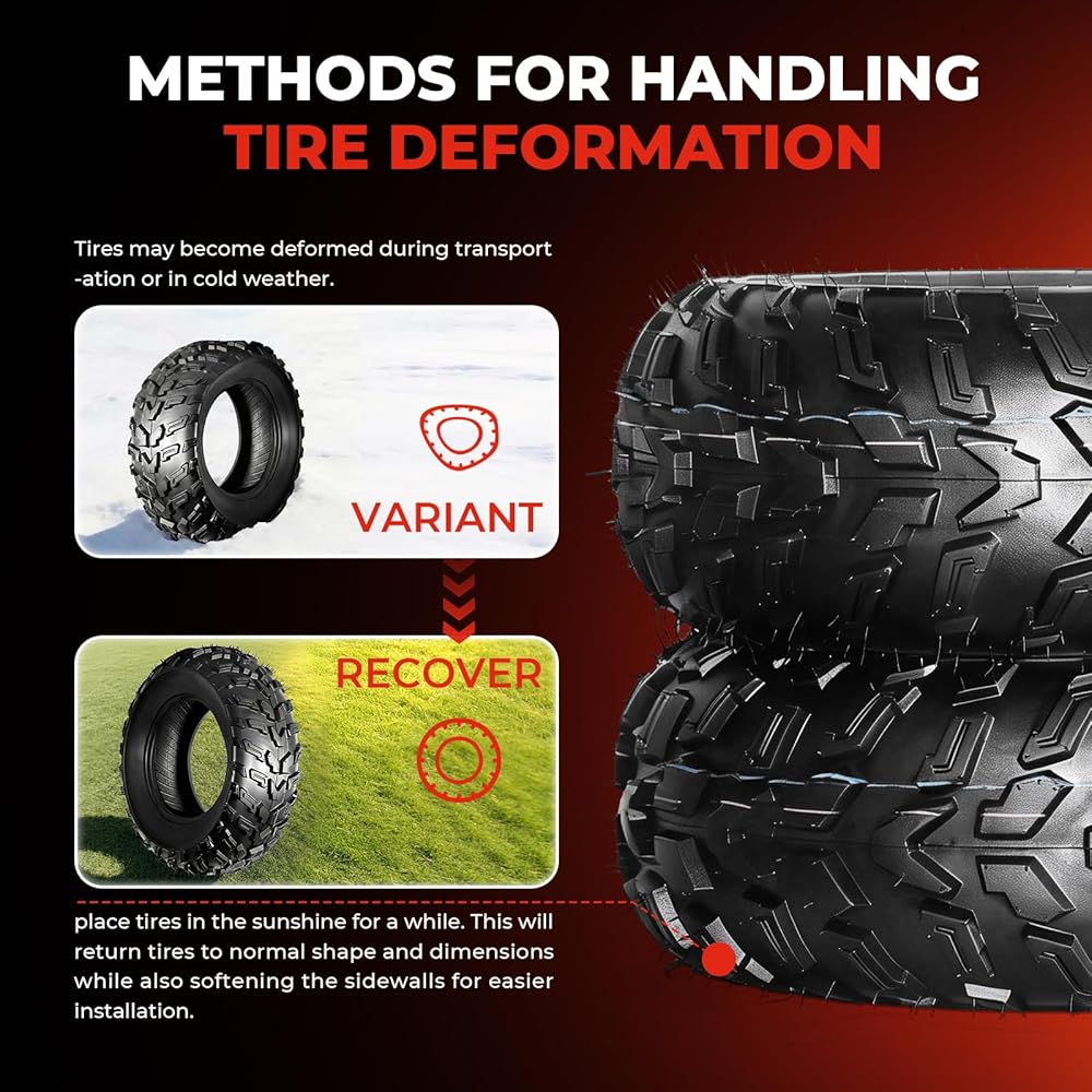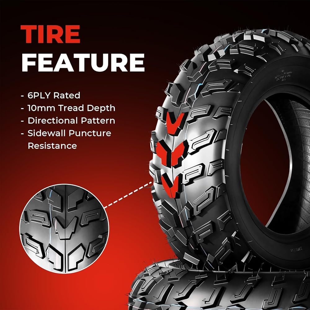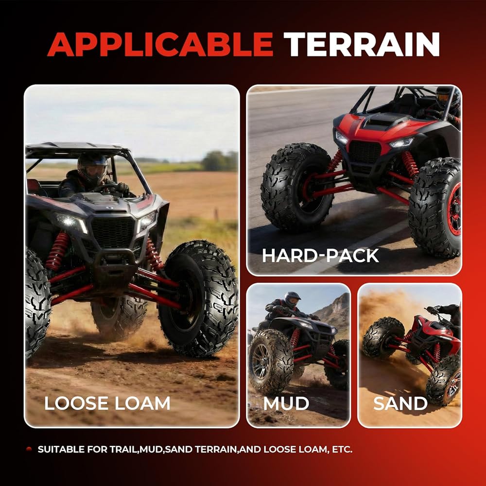 • توافق واسع للمركبة: مواصفات مقاس 22x7x11 و22x10x9، تتميز بمطاط ممتاز، مصمم لأداء مختلف التضاريس. يناسب معظم موديلات ATV وUTV، بالإضافة إلى جزازات العشب والمركبات المساعدة. غير مخصص للاستخدام على الطرق السريعة!!!