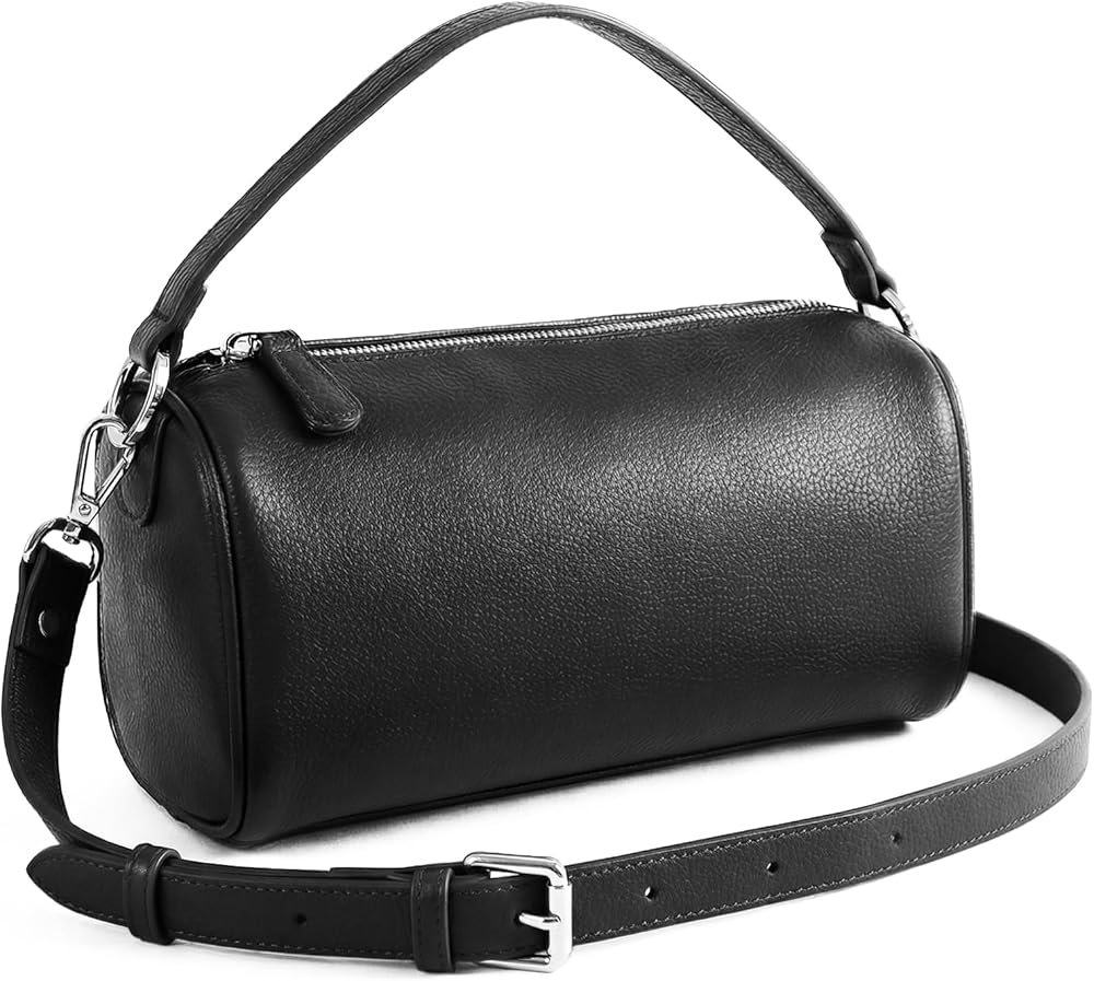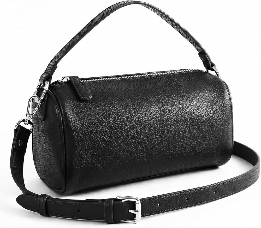 【LARGE CAPACITY CYLINDER DESIGN】 The unique horizontal barrel shape maximizes internal space without looking bulky. Measuring 10.2"x 5.1"x 5.1"(26 x 13 x 13 cm), it easily fits your phone, wallet, makeup, and sunglasses—perfect for those who need utility and style.
