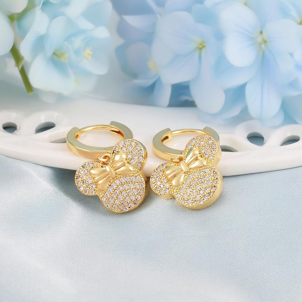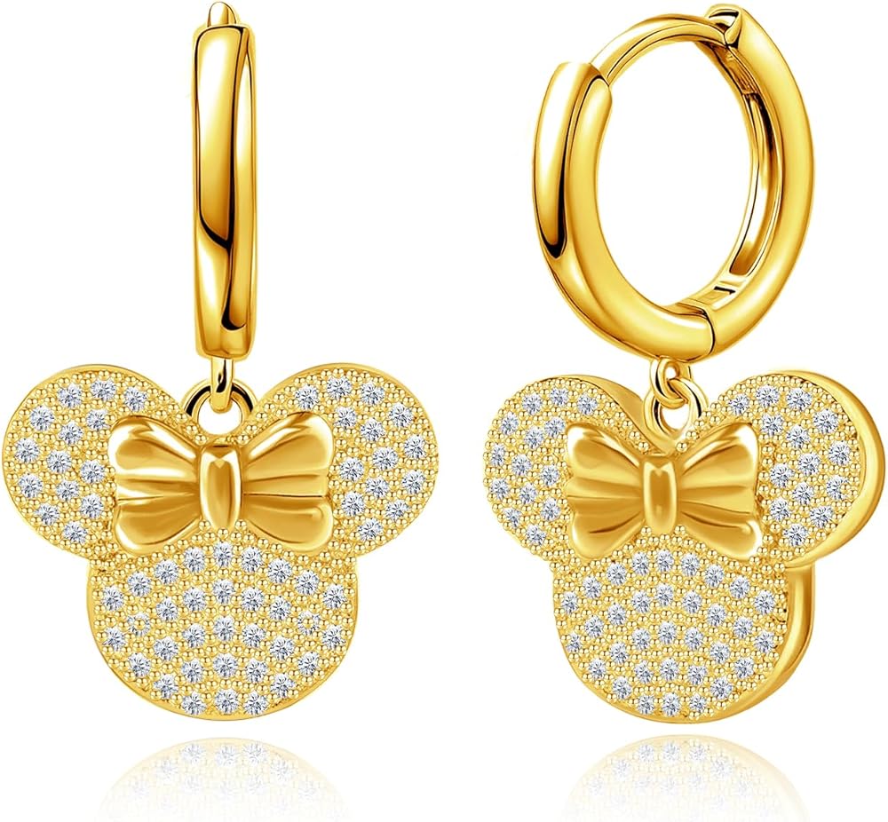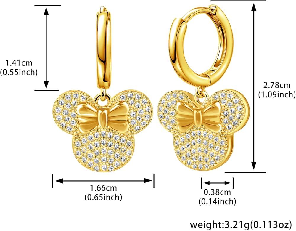 تصميم الفأر: تتميز هذه الأقراط بصورة ظلية ساحرة للفأر مع تفاصيل زركونيا مكعبة. متوفرة باللونين الفضي والذهبي، وتضفي لمسة من السحر على مظهرك، وهي مثالية لمحبي الشخصيات الكلاسيكية.