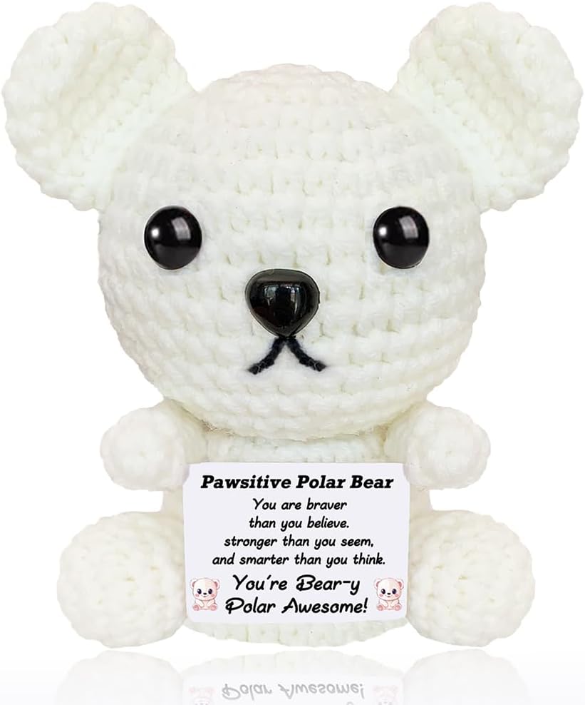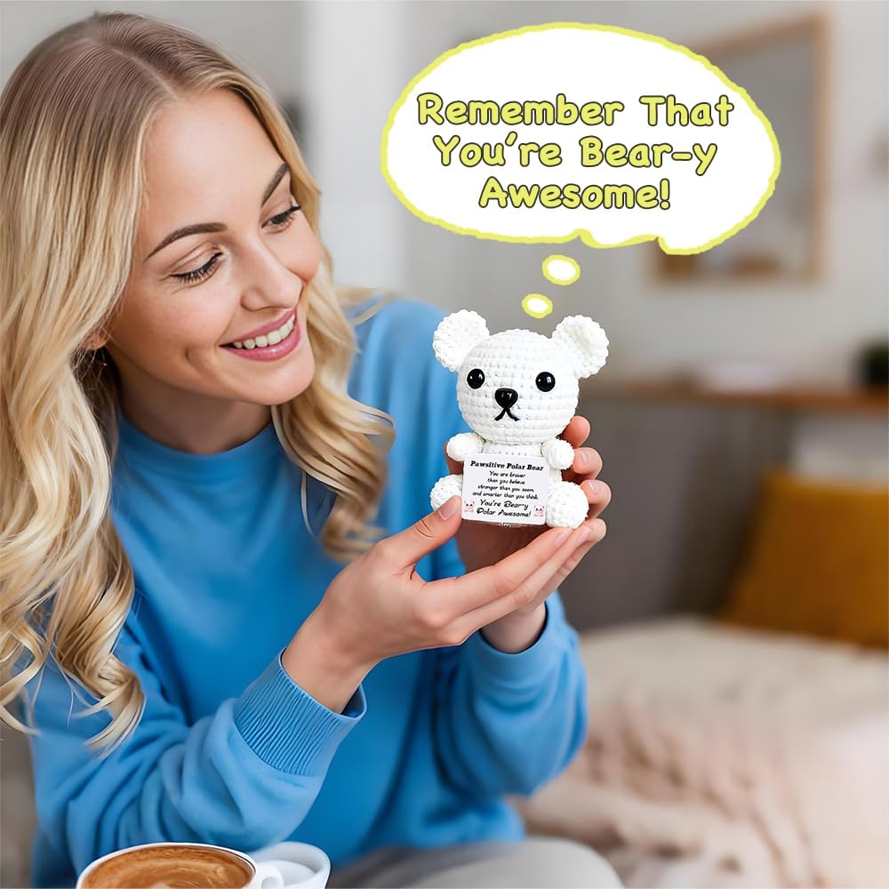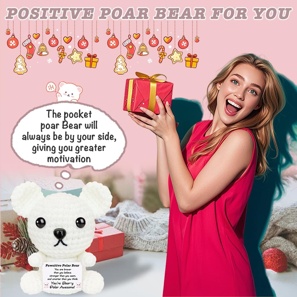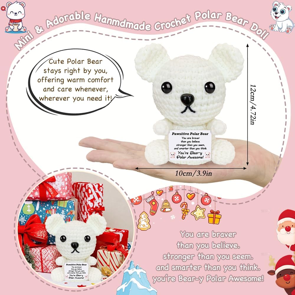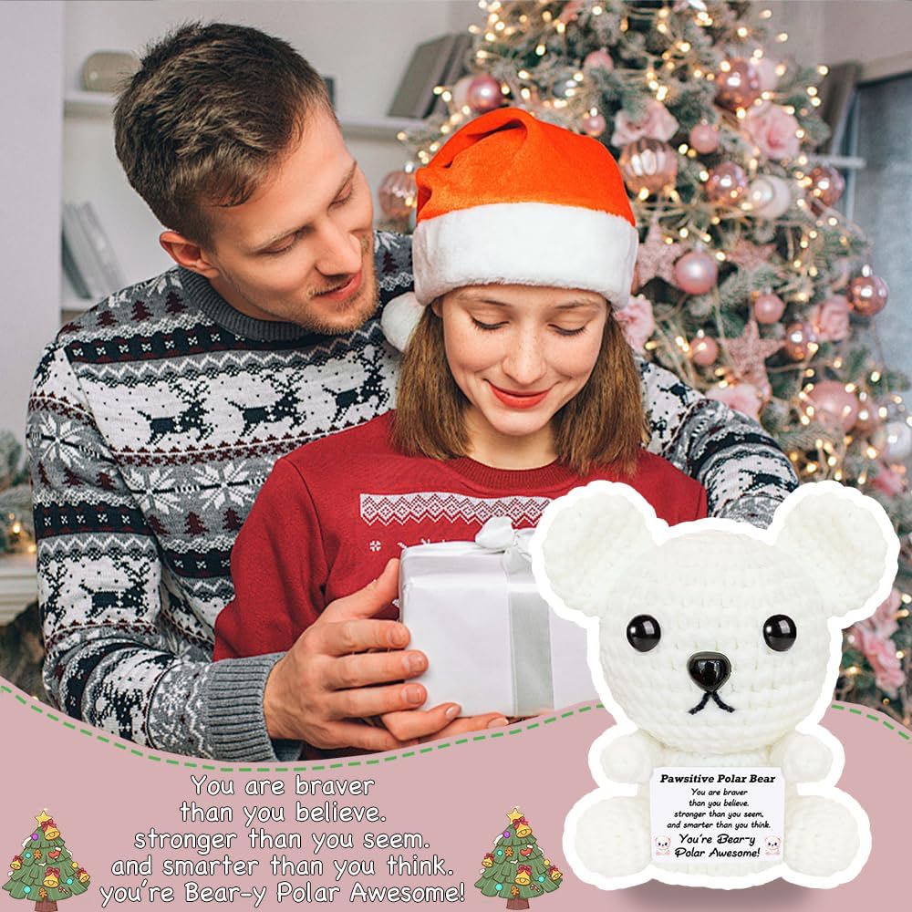 عيد الميلاد الدعم العاطفي الكروشيه الدب القطبي أفخم لطيف الحيوانات الكروشيه الإيجابية مع رسائل صغيرة اليدوية ابتهج الهدايا للنساء الأخت أصدقاء عيد ميلاد محشوة أنت هدية رهيبة