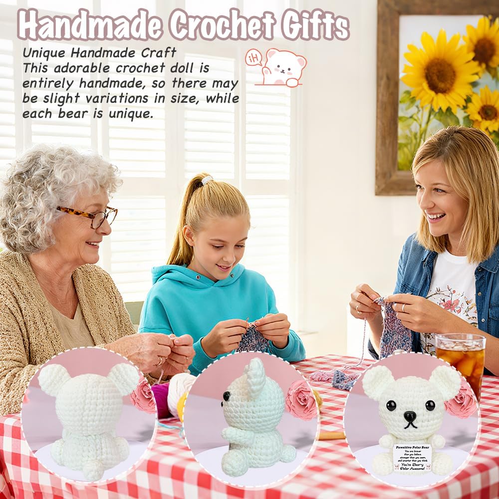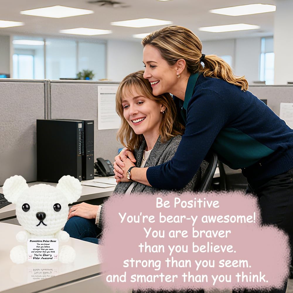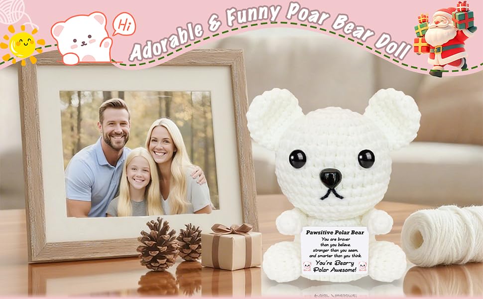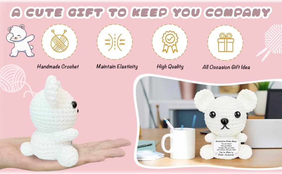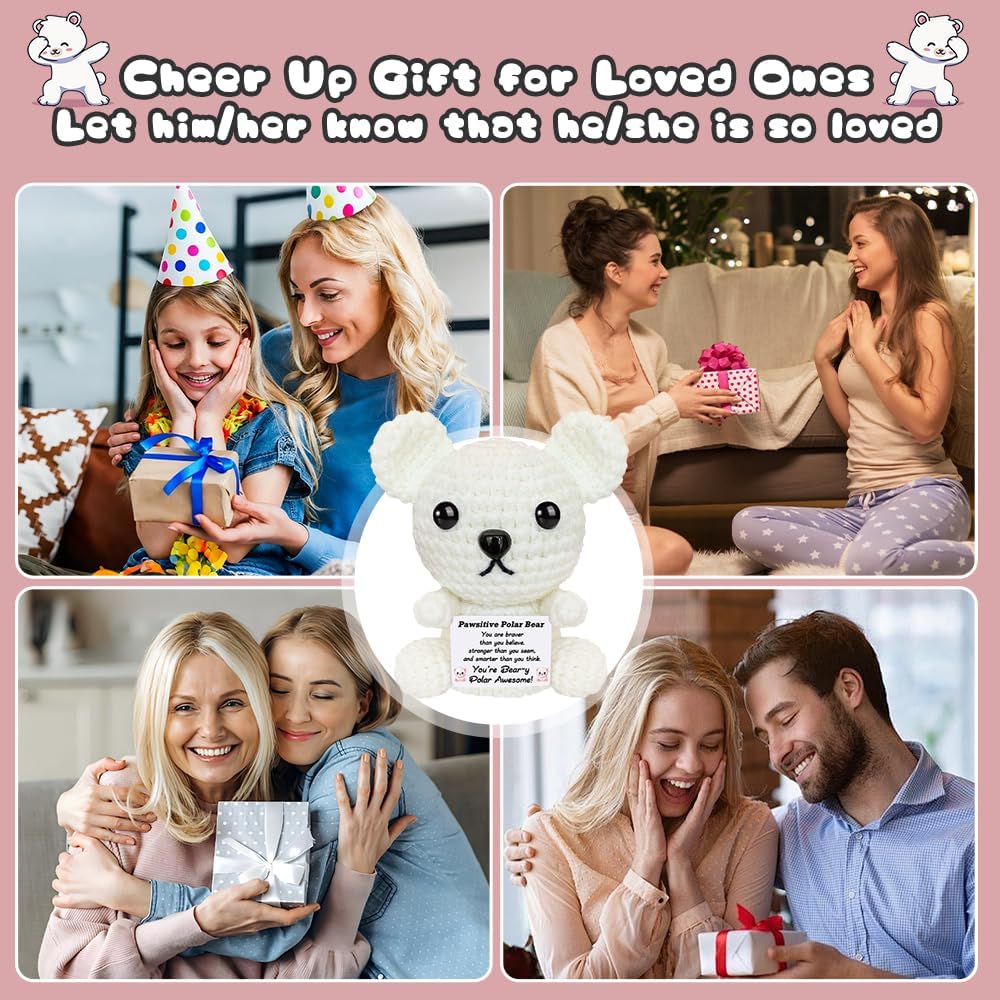 عيد الميلاد الدعم العاطفي الكروشيه الدب القطبي أفخم لطيف الحيوانات الكروشيه الإيجابية مع رسائل صغيرة اليدوية ابتهج الهدايا للنساء الأخت أصدقاء عيد ميلاد محشوة أنت هدية رهيبة