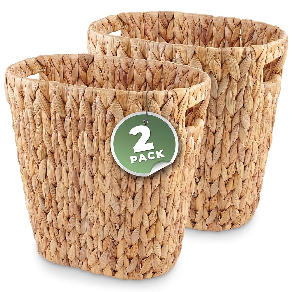 𝟐-𝐏𝐀𝐂𝐊 𝐕𝐀𝐋𝐔𝐄: علبتي قمامة للحمام مصنوعة يدويًا من الخيزران في فيتنام من صفير الماء الطبيعي؛ تمنحك مجموعة سلة المهملات المنسوجة هذه الجودة بسعر واحد عادل.