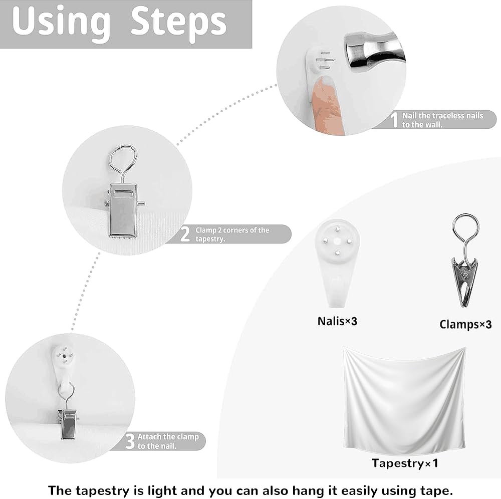 • تعليمات التعبئة: سنزودك بـ 3 مسامير إبهام لا أثر لها، و3 مشابك معدنية لتعليق خلفيات باريس الخاصة بك لالتقاط الصور بسهولة